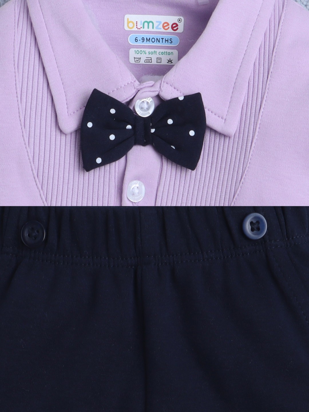 BUMZEE Navy & White Boys Half Sleeves Shirt & Short Set With Bow Suspender & Cap