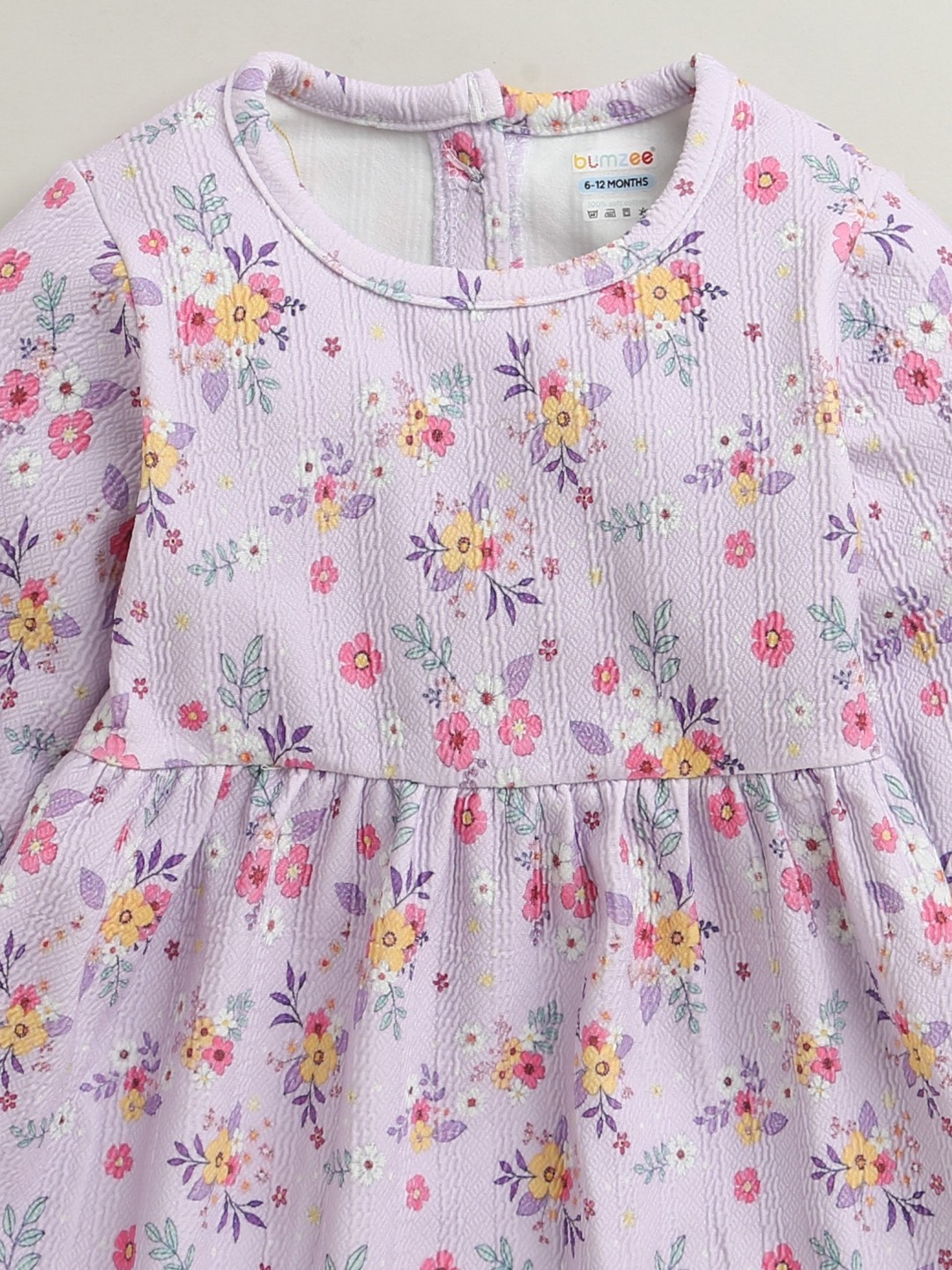 BUMZEE Lavender Girls Full Sleeves Poly Blend Frock Dress