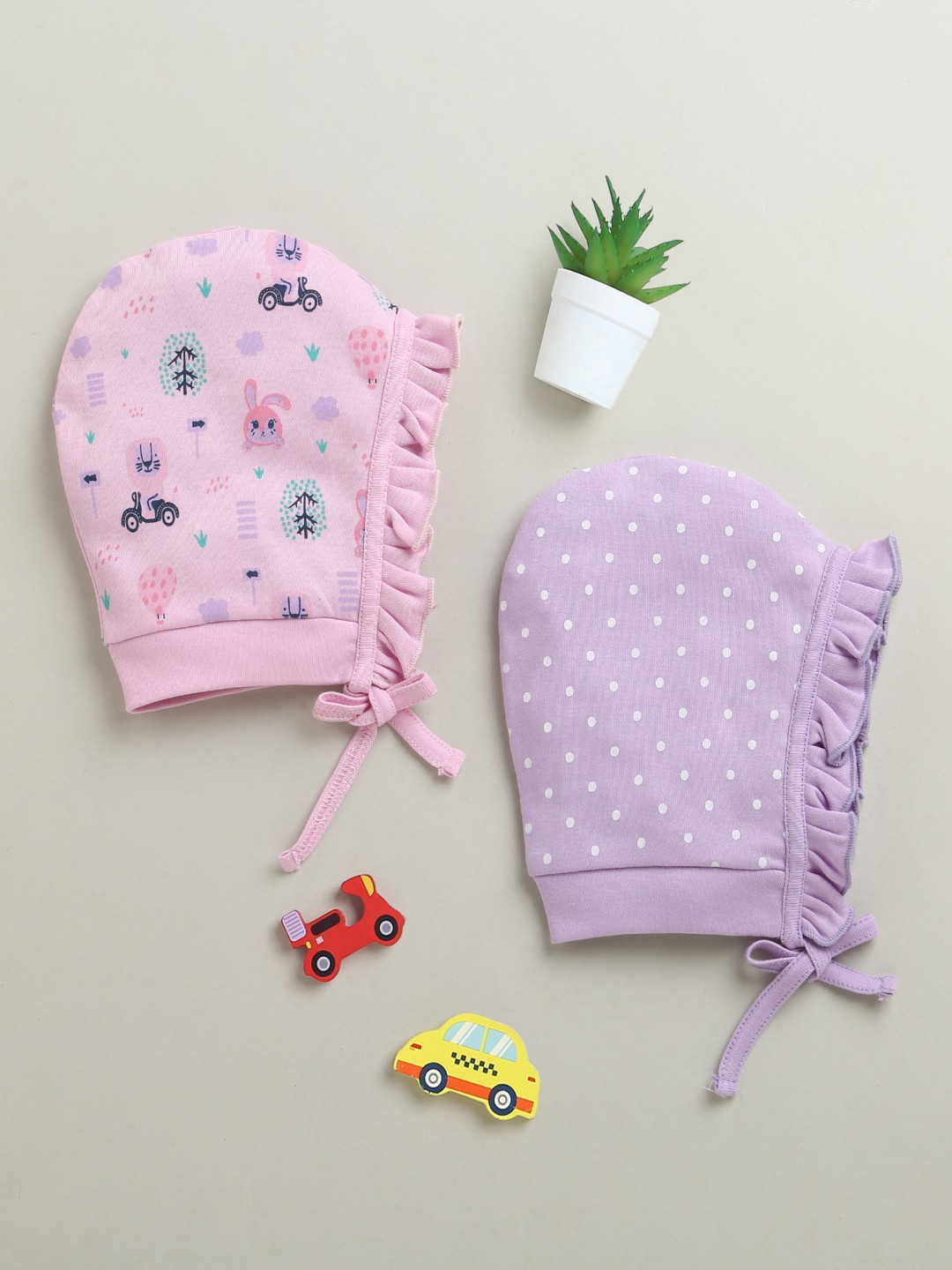 BUMZEE Baby Pink Baby Girls Knotted Cap Pack Of 2