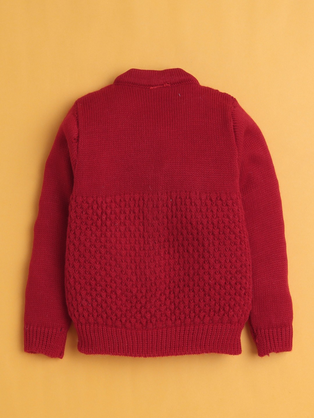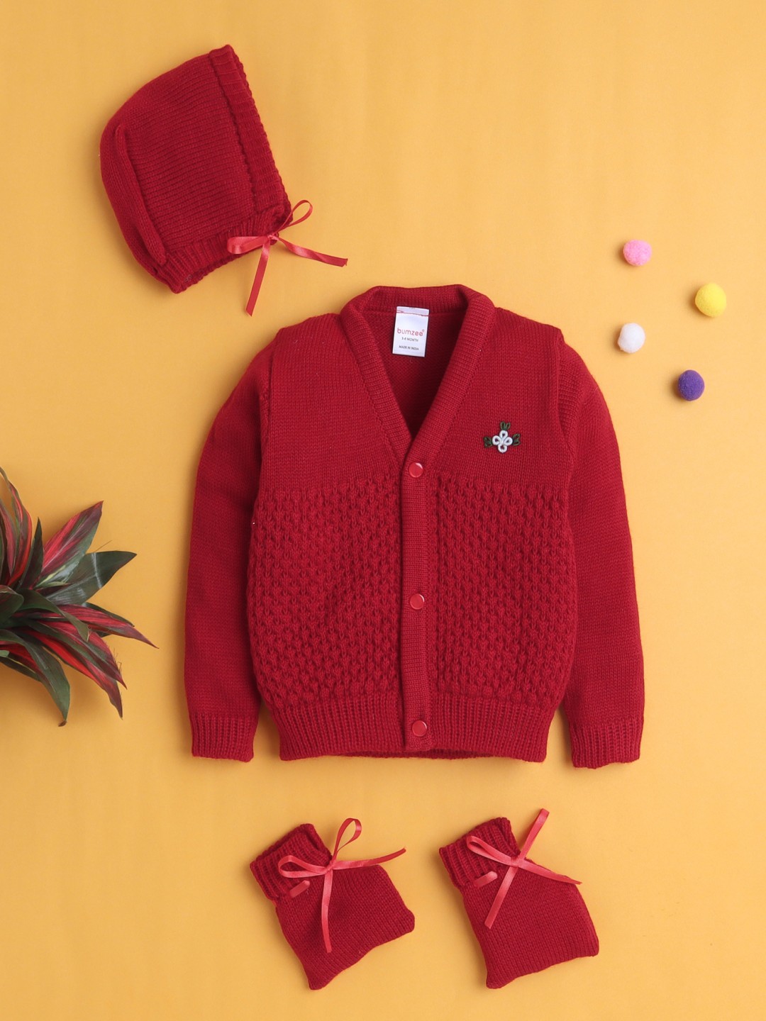 BUMZEE Red Baby Boys Full Sleeves Acrylic Blend Sweater With Cap & Socks