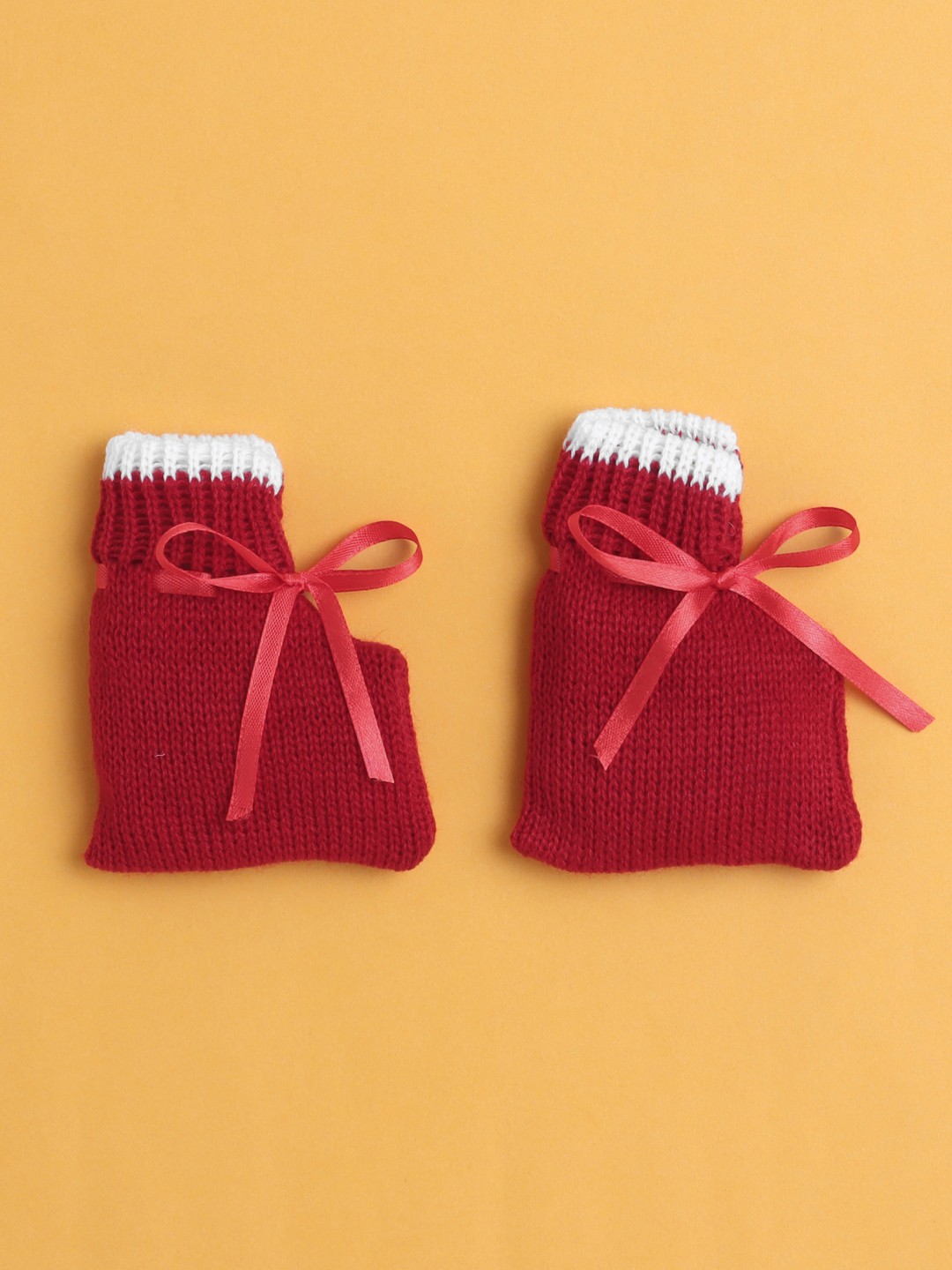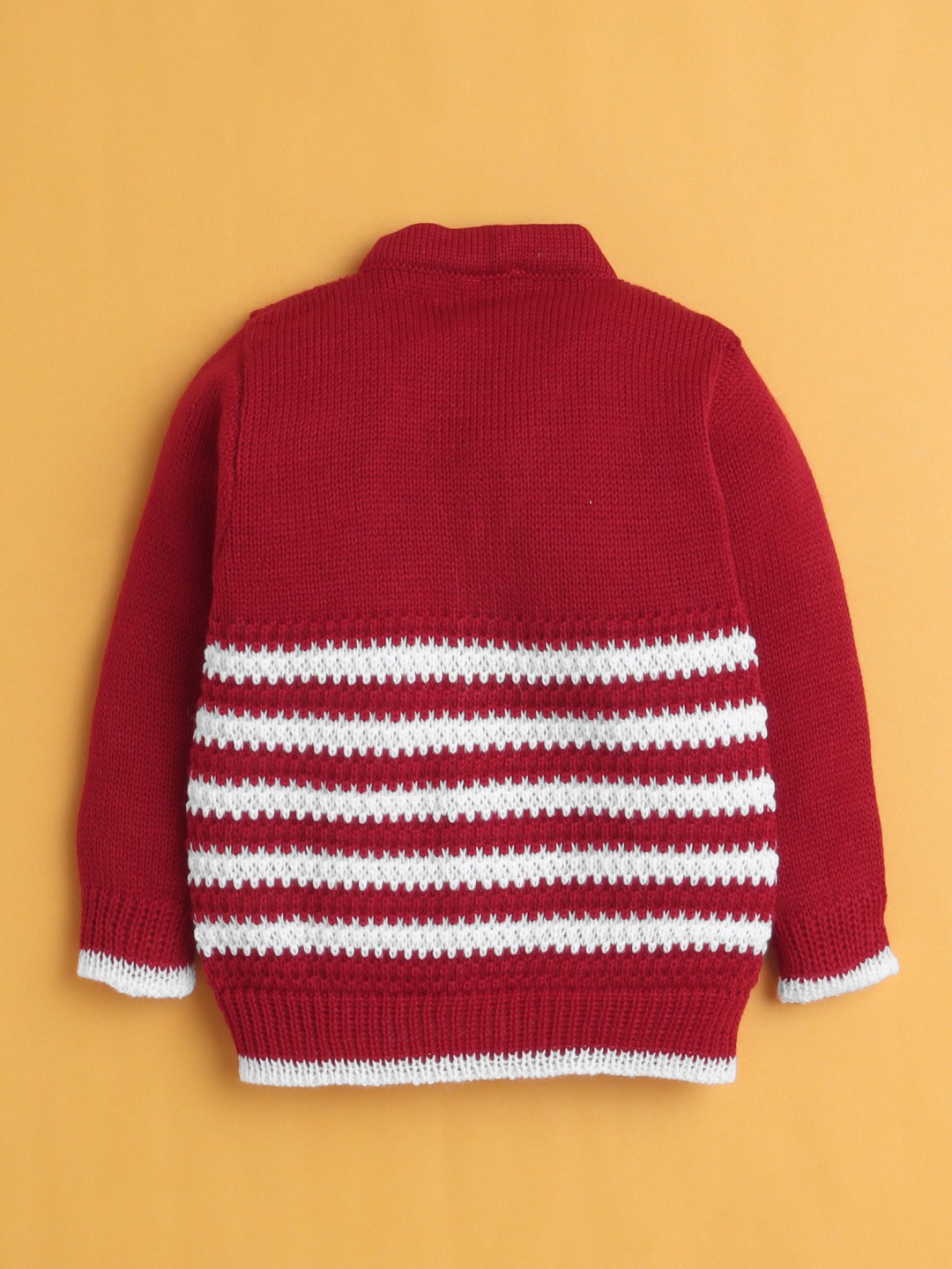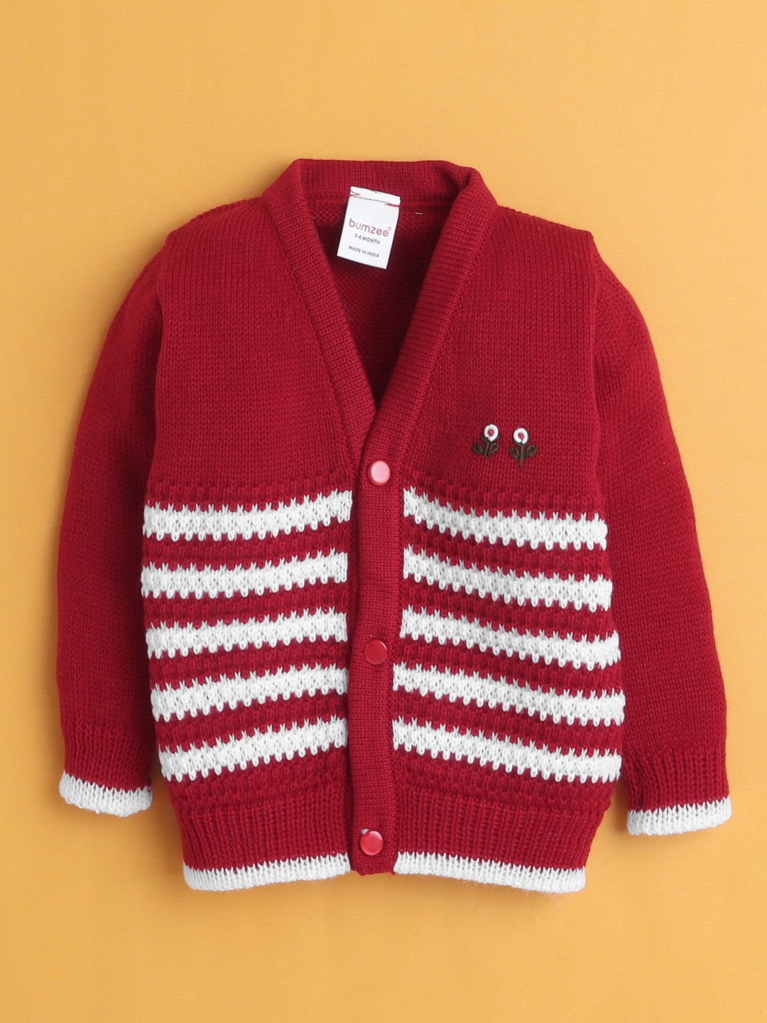 BUMZEE Red Baby Boys Full Sleeves Acrylic Blend Sweater With Cap & Socks