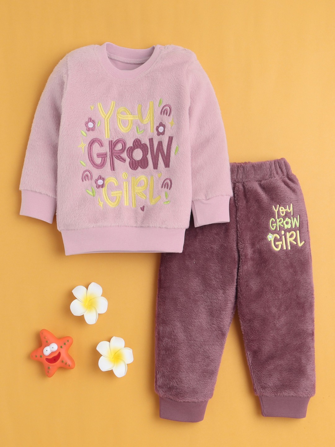 BUMZEE Pink Girls Full Sleeves Fleece Winter Wear Set