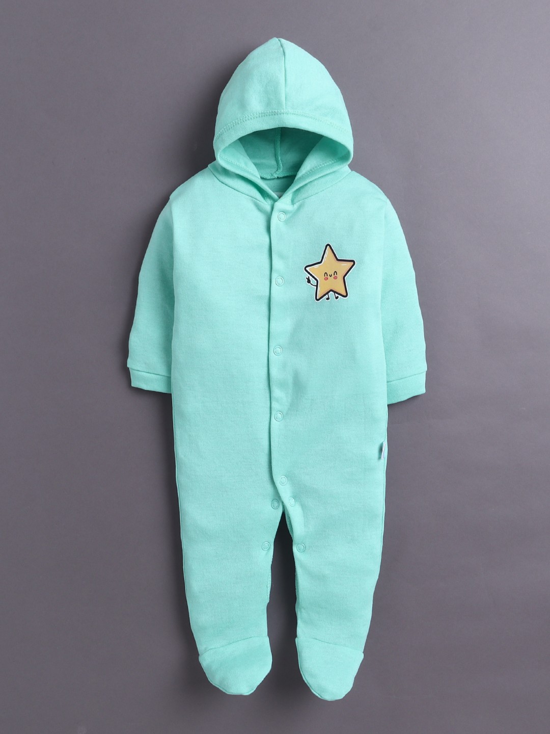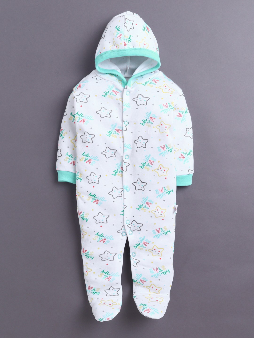BUMZEE Mint Green & White Baby Girls Full Sleeves Hooded Sleepsuit Pack Of 2