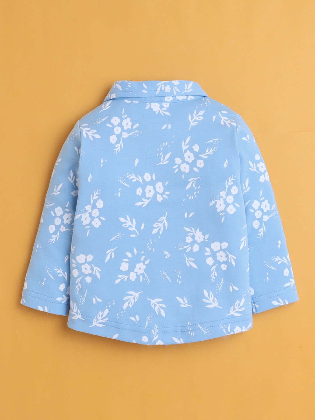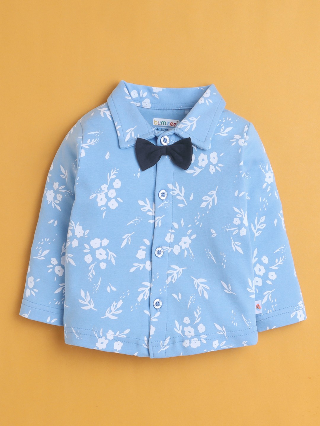 BUMZEE Sky Blue & White Boys Full Sleeves Shirt Waistcoat & Pant Set With Applique Bow