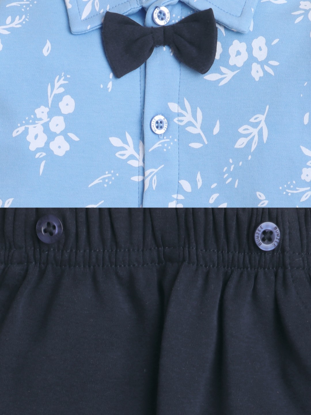 BUMZEE Navy & White Boys Half Sleeves Shirt & Short Set With Bow Suspender & Cap