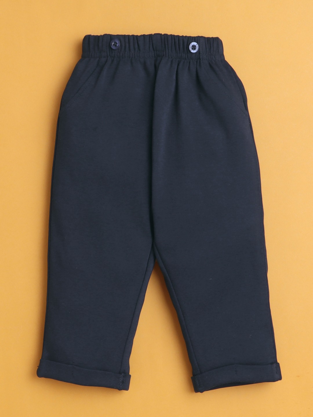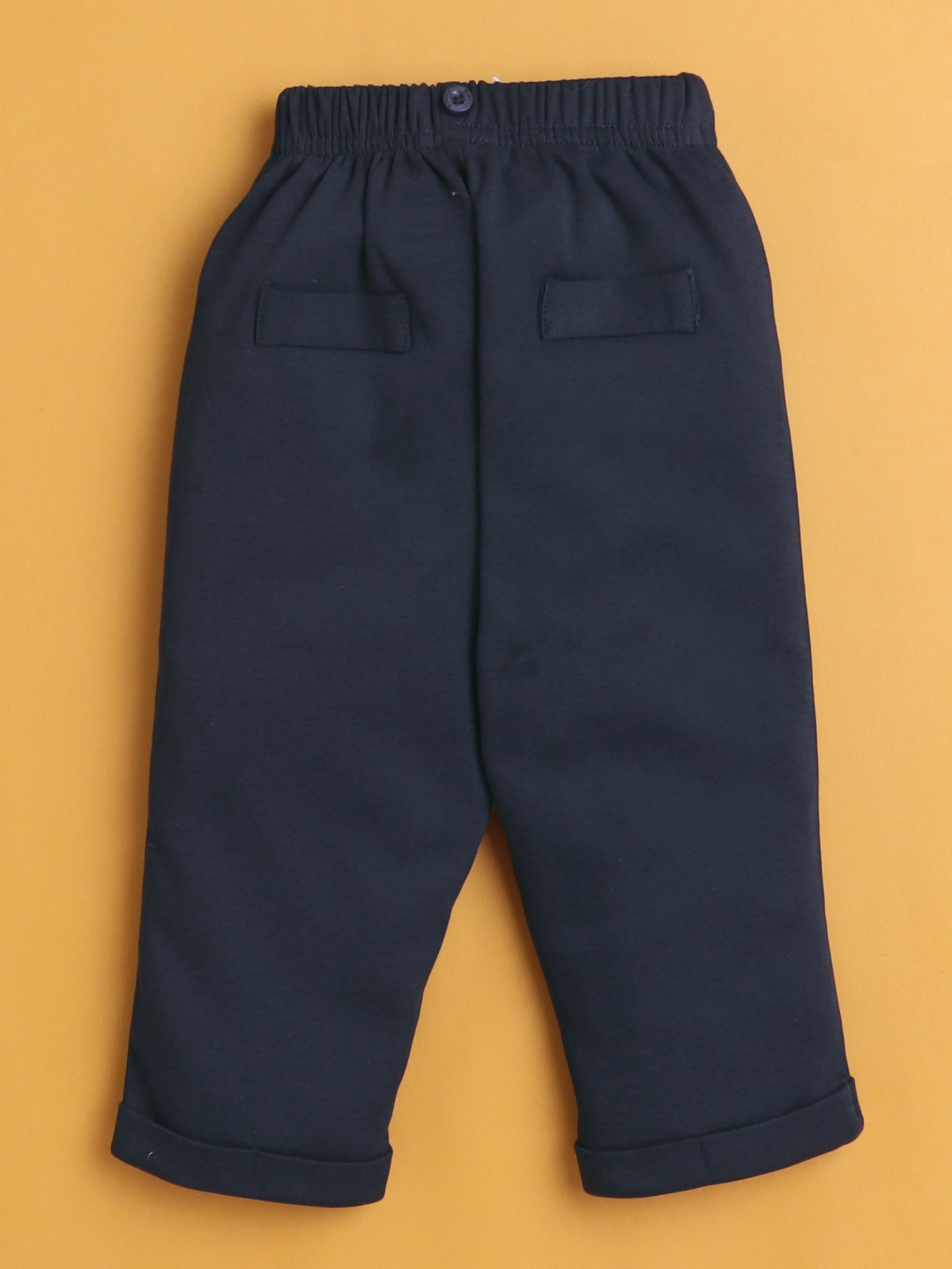 BUMZEE Navy & White Boys Full Sleeves Shirt Pant Set With Suspender & Cap