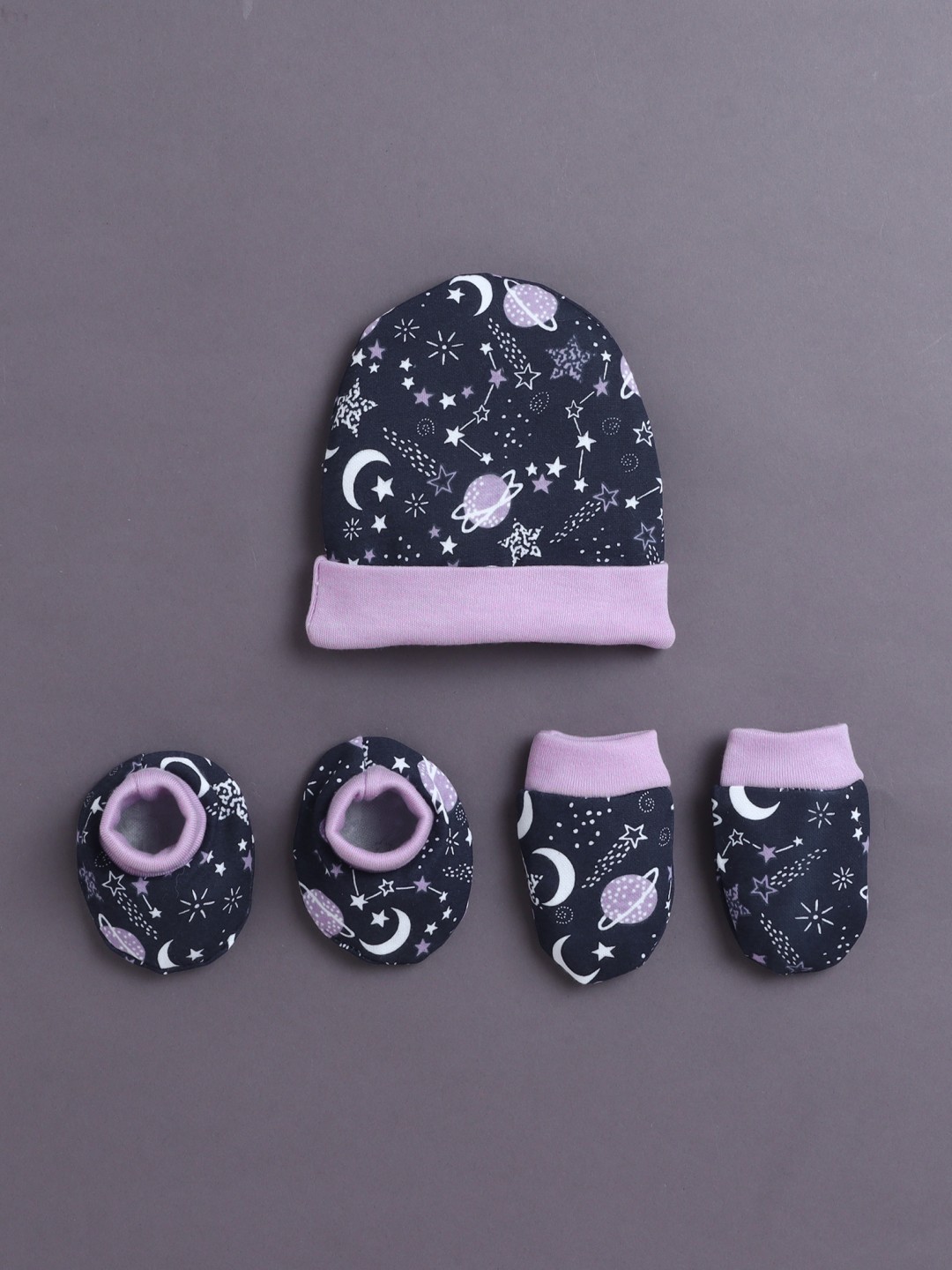 Wrap your baby in comfort with our cap, mitten, and bootie set. Lightweight, breathable, and soft on delicate skin, it helps regulate warmth while preventing scratches. Perfect for newborn essentials, this set is practical, cute, and a must-have for every little one’s first wardrobe.