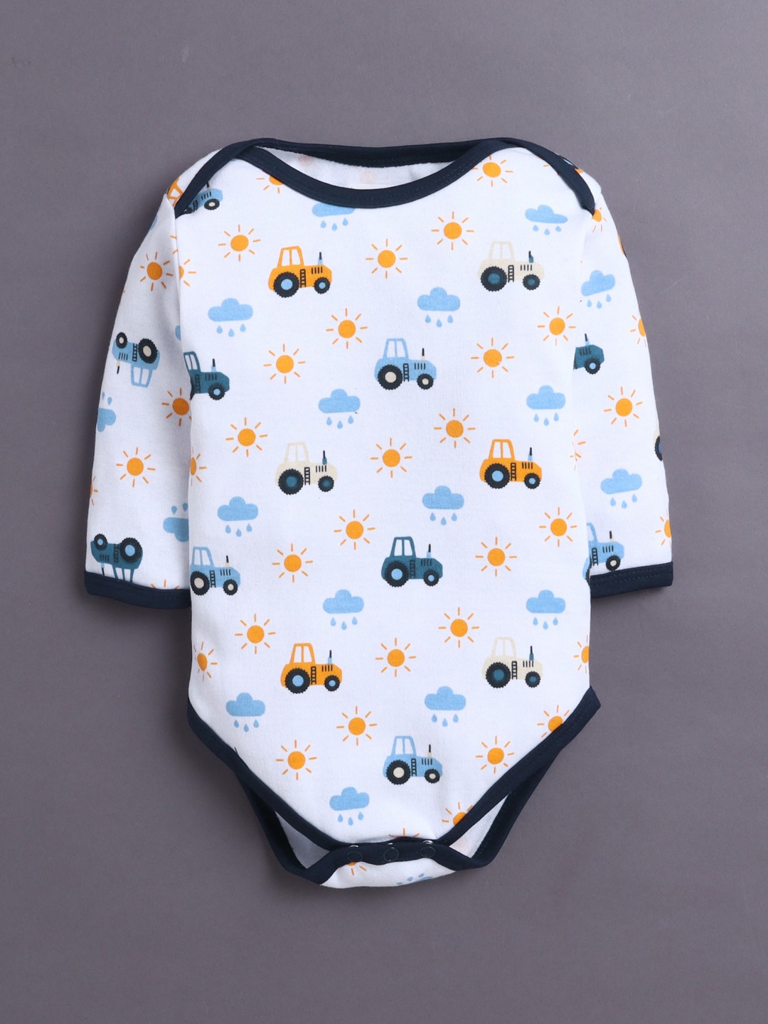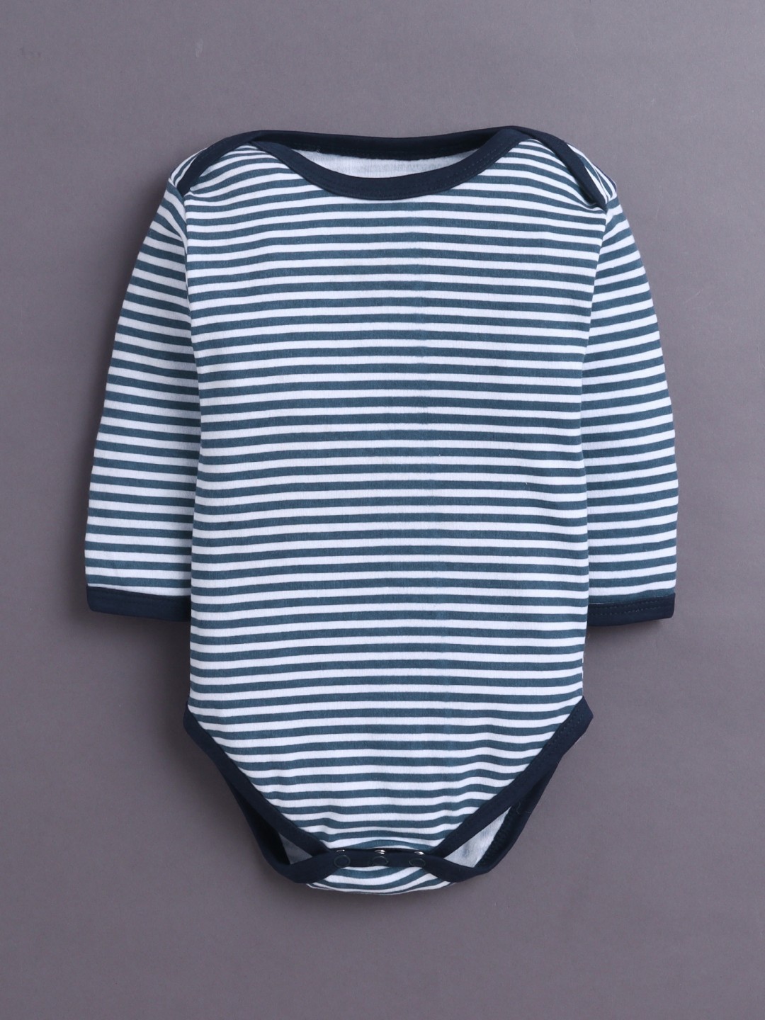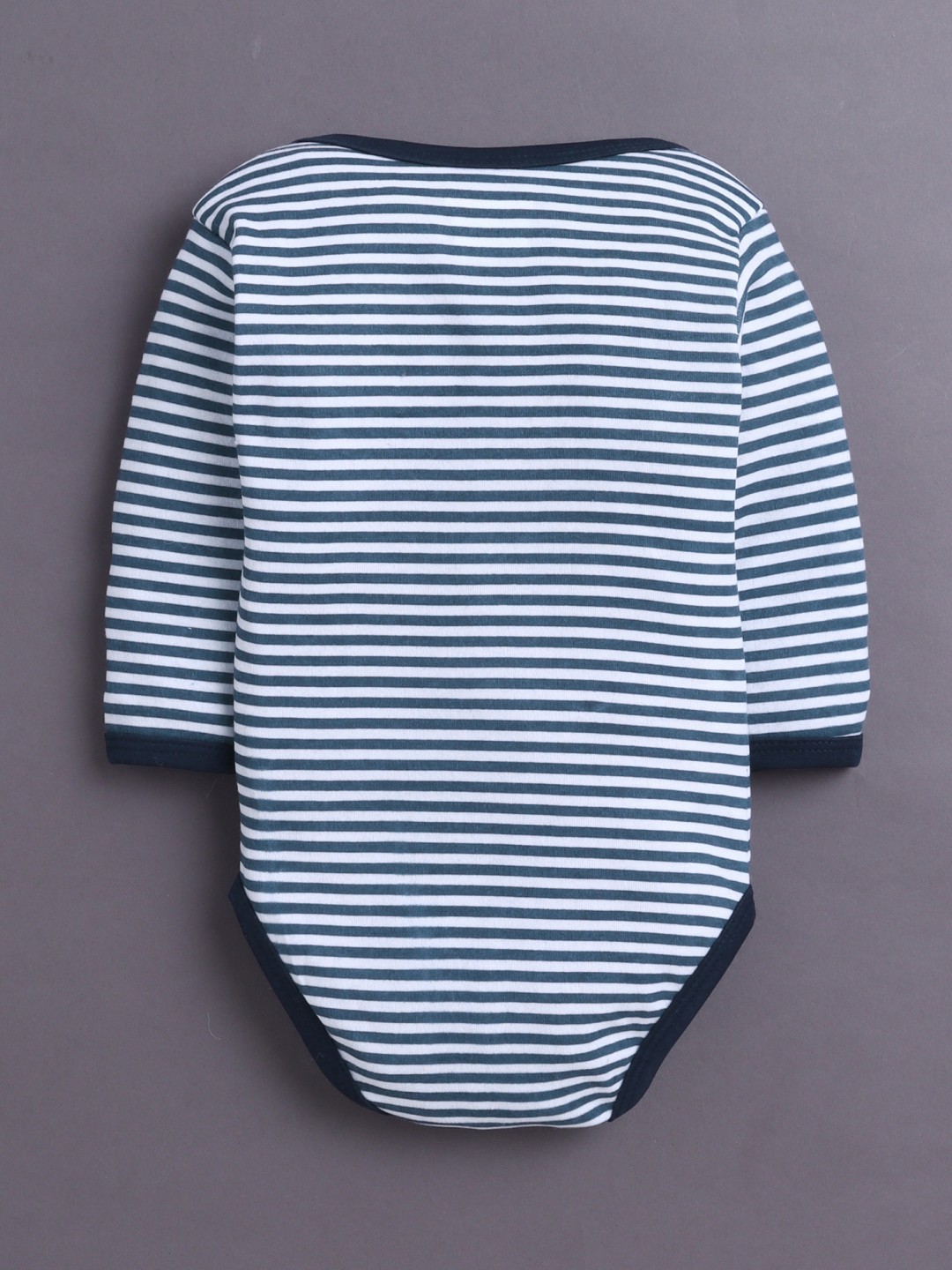 BUMZEE Navy & White Baby Boys Full Sleeves Cotton Bodysuit Onesies Pack Of 3