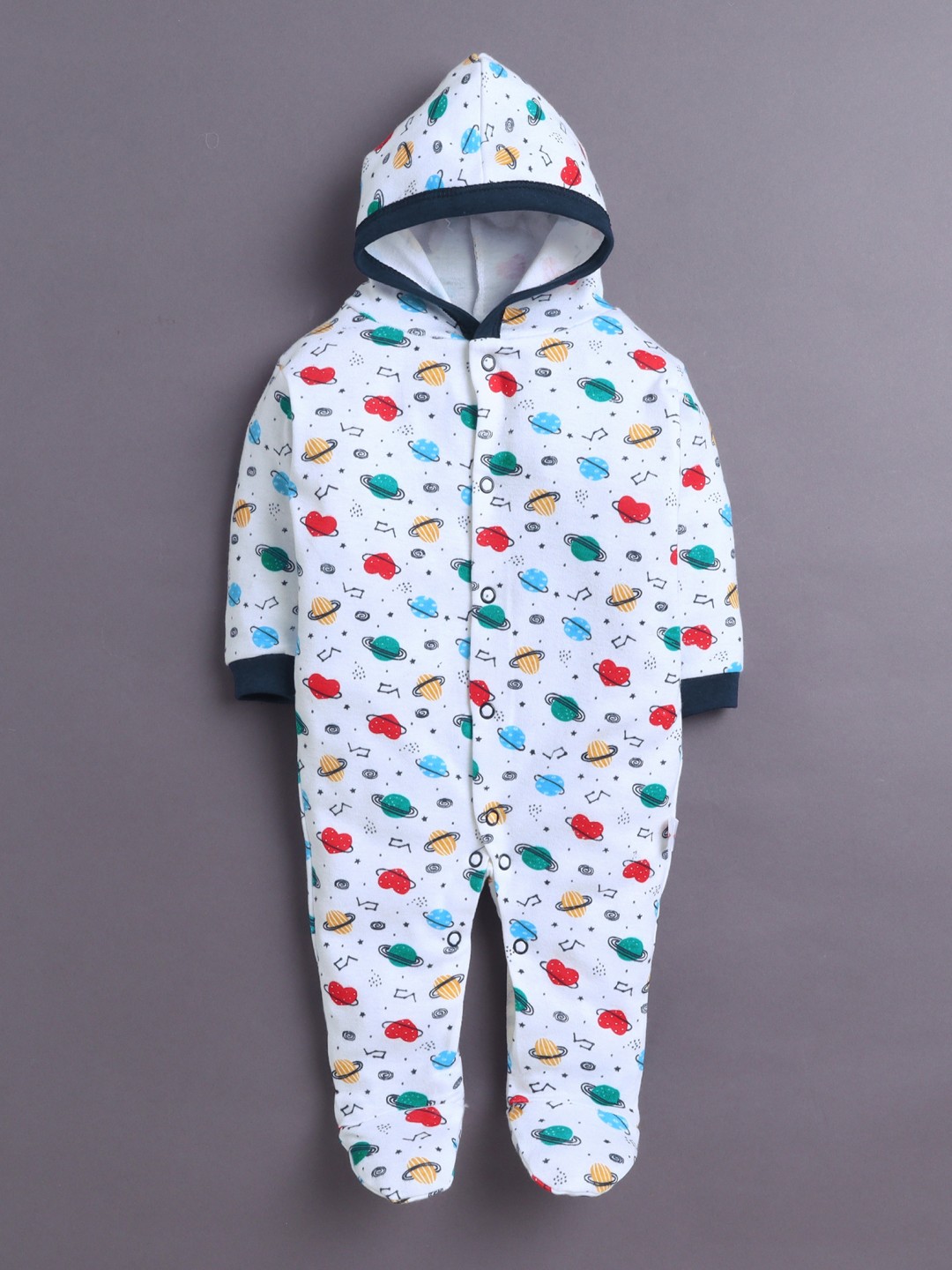 BUMZEE White Girls Full Sleeves Trendy Sleepsuit With Hood