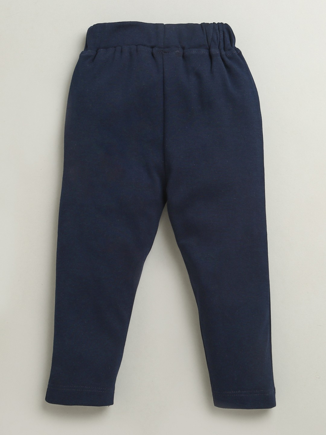 BUMZEE Navy & White Boys Full Sleeves Shirt Pant Set With Suspender & Cap