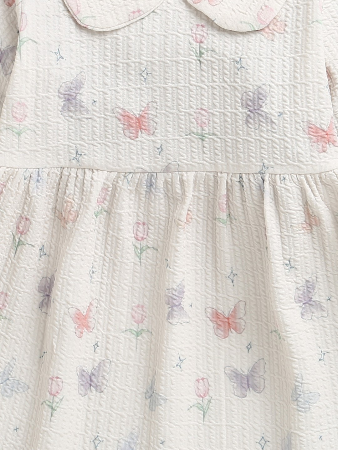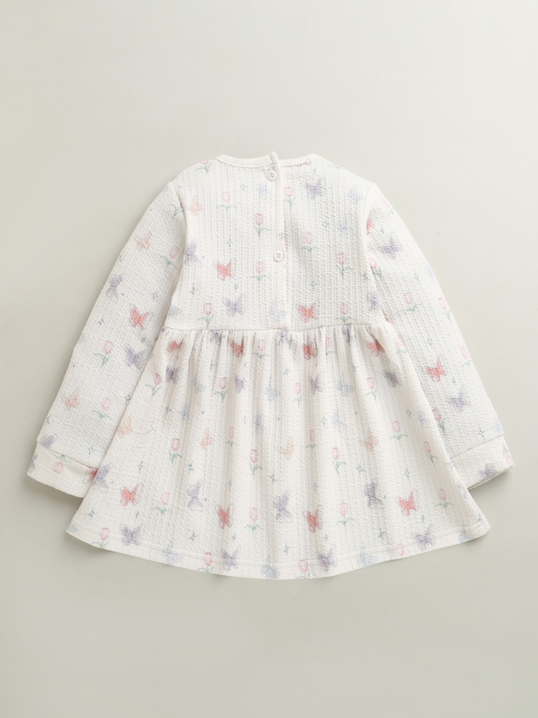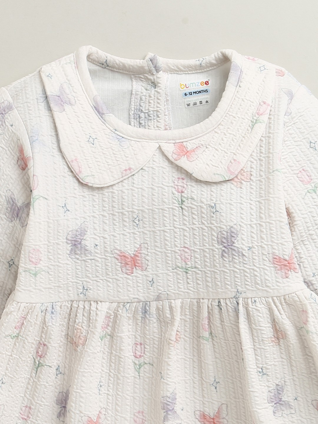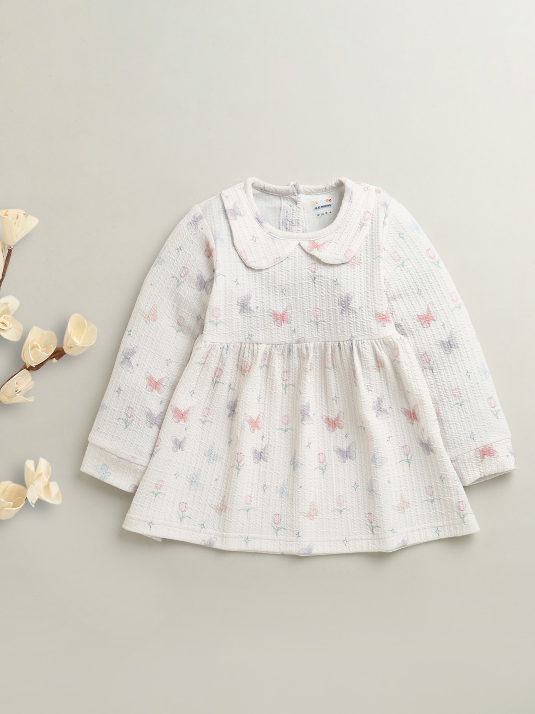 BUMZEE Off White Girls Full Sleeves Poly Blend Frock Dress
