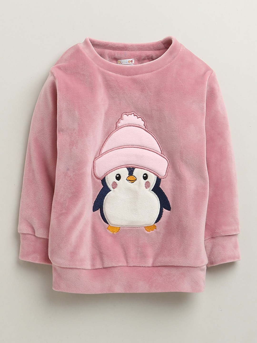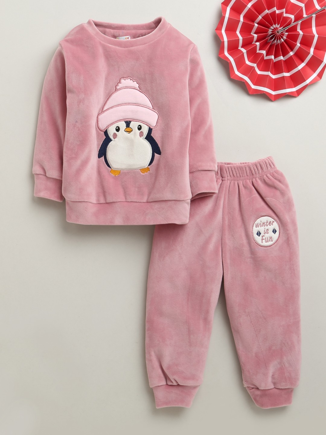 BUMZEE Pink Girls Full Sleeves Fleece Winter Wear Set