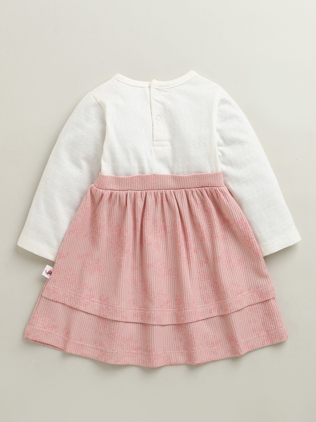 BUMZEE Onion Pink & White Girls Full Sleeves Cotton Frock Dress