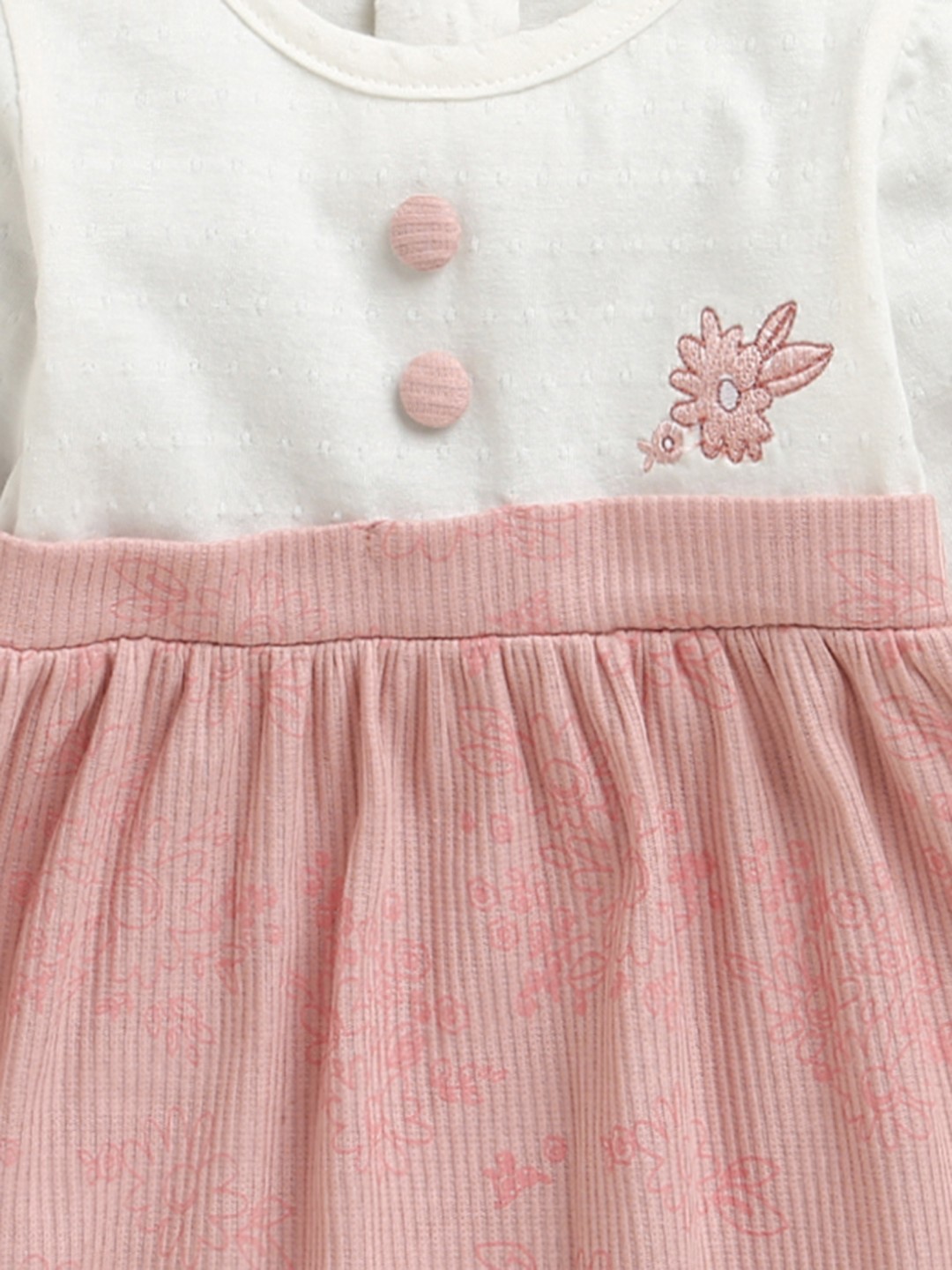 BUMZEE Pink & White Girls Full Sleeves Cotton Knee Length Frock