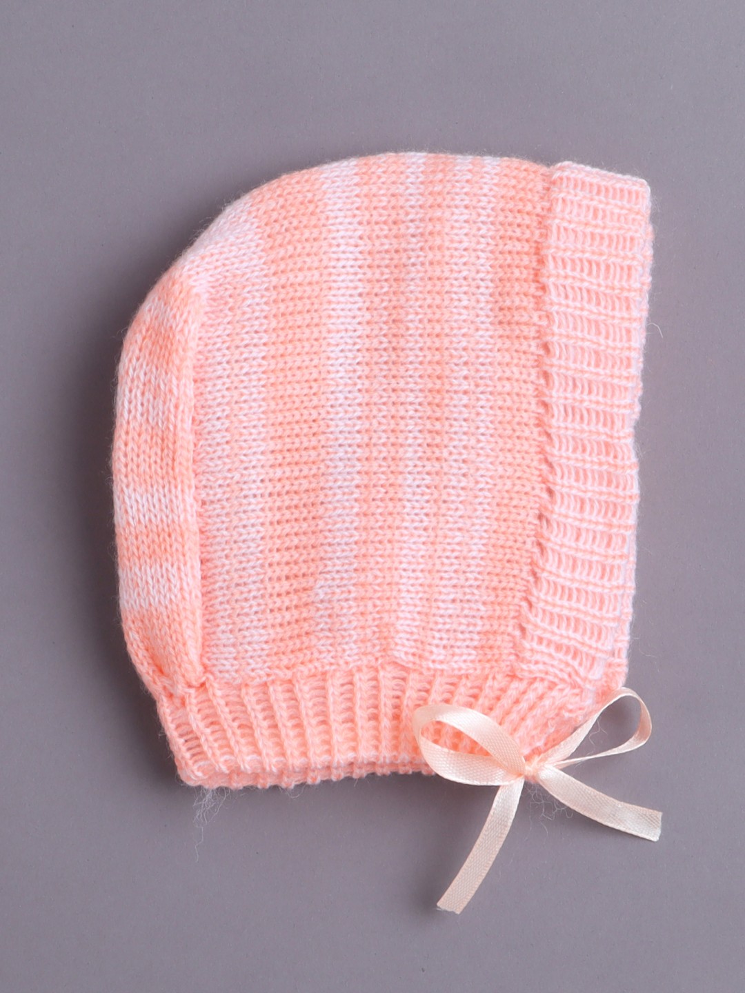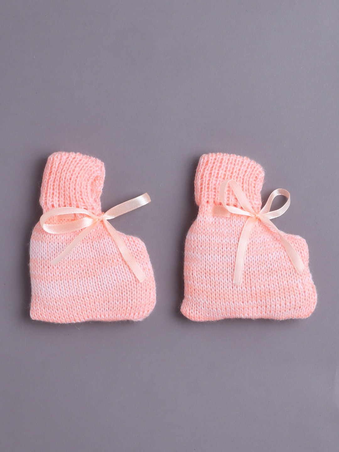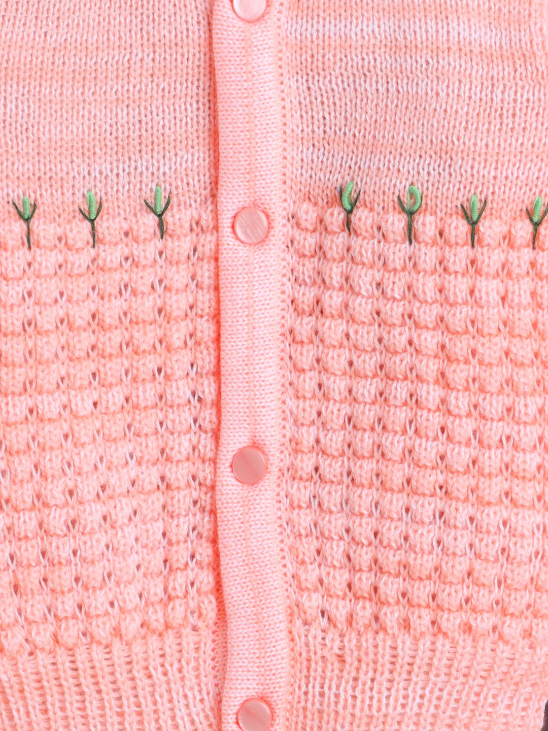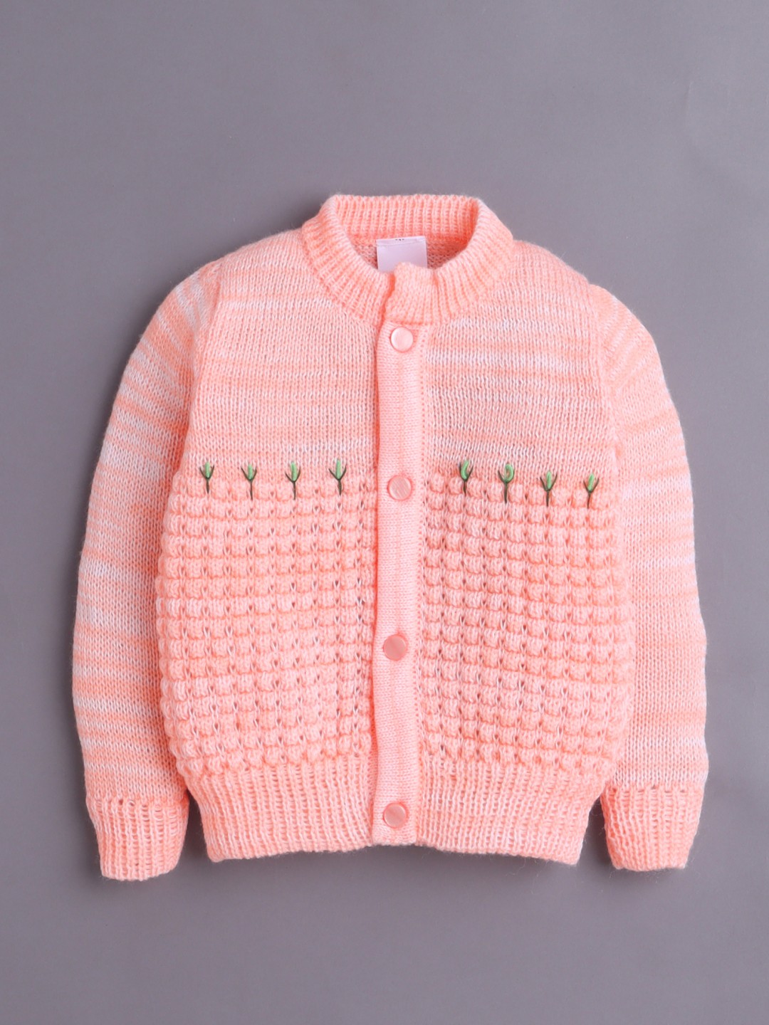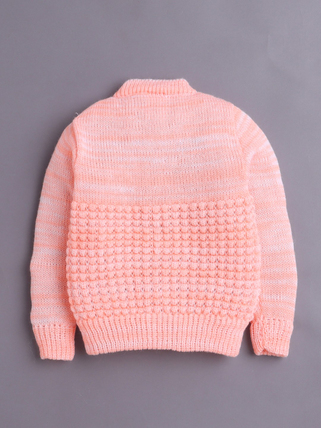 BUMZEE Peach Baby Girls Full Sleeves Acrylic Blend Sweater With Cap & Socks