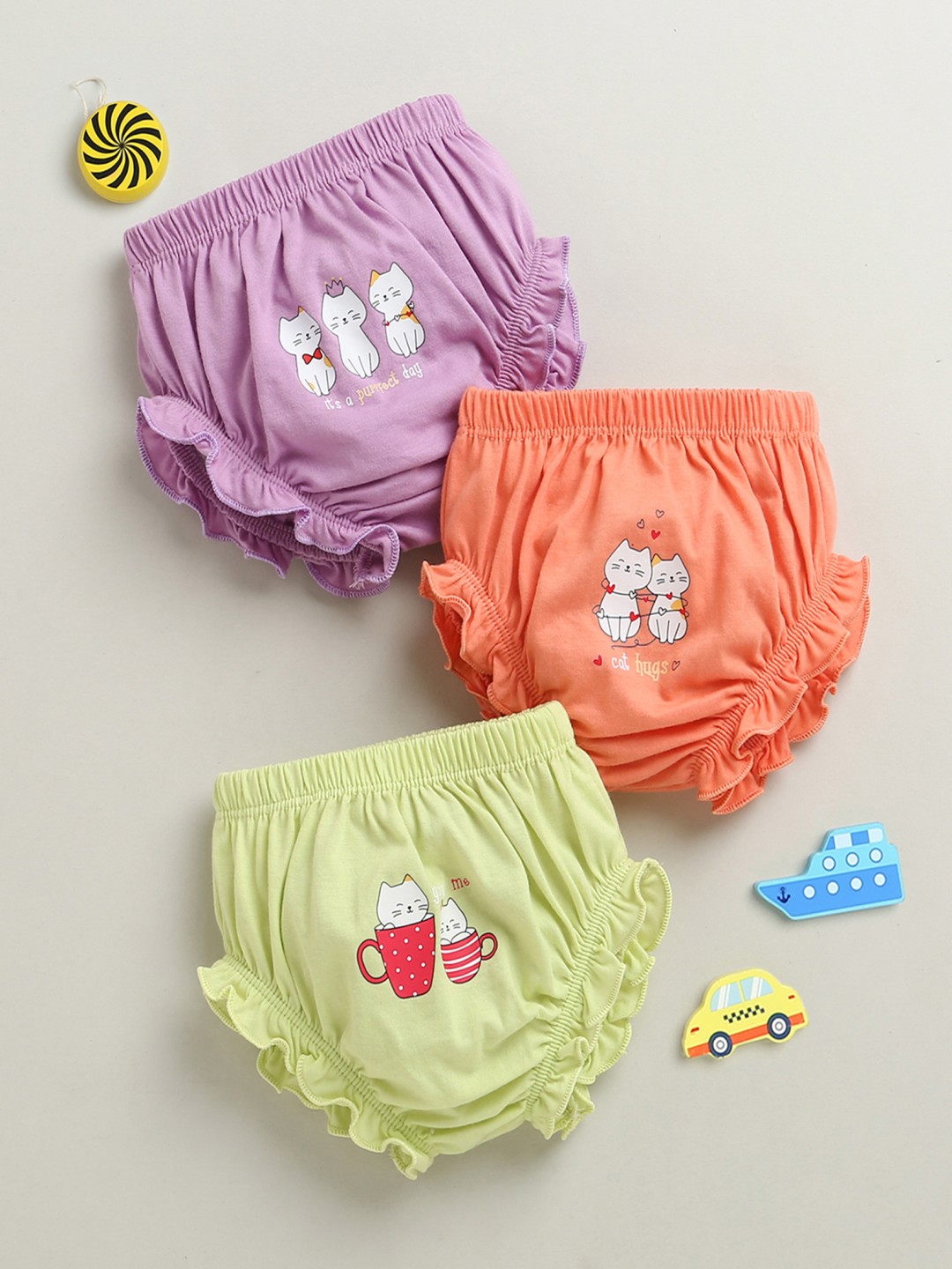 BUMZEE Peach & Lavender Girls Cotton Bloomers Pack of 3