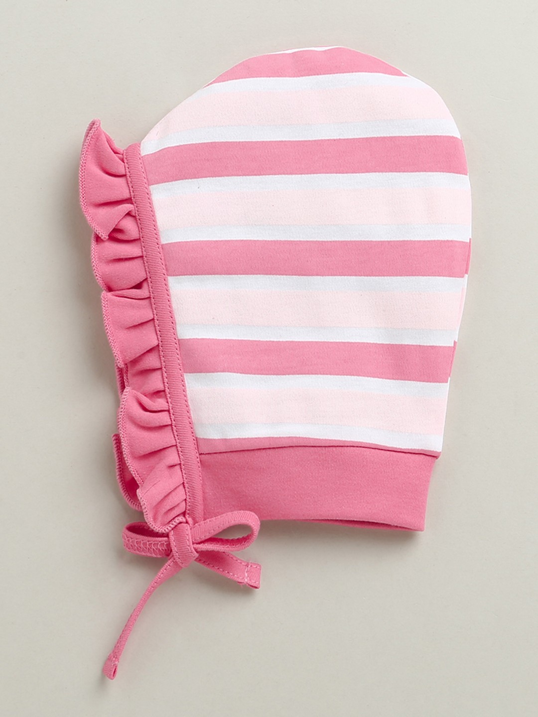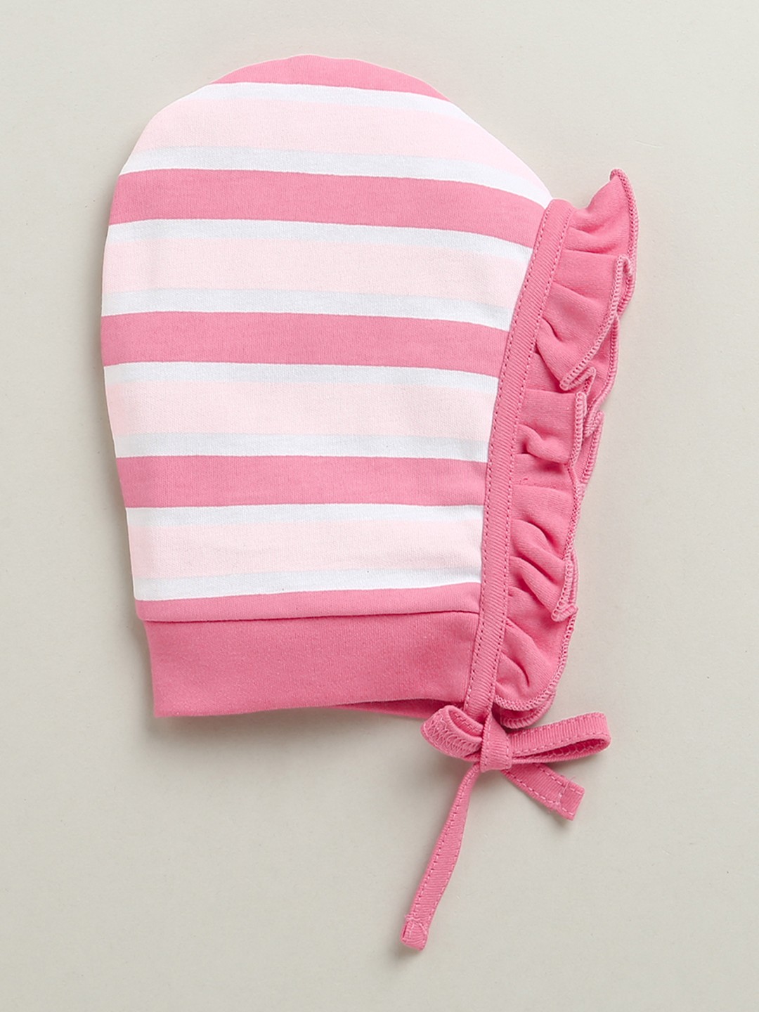 BUMZEE Peach & White Baby Girls Round Cap Pack Of 2