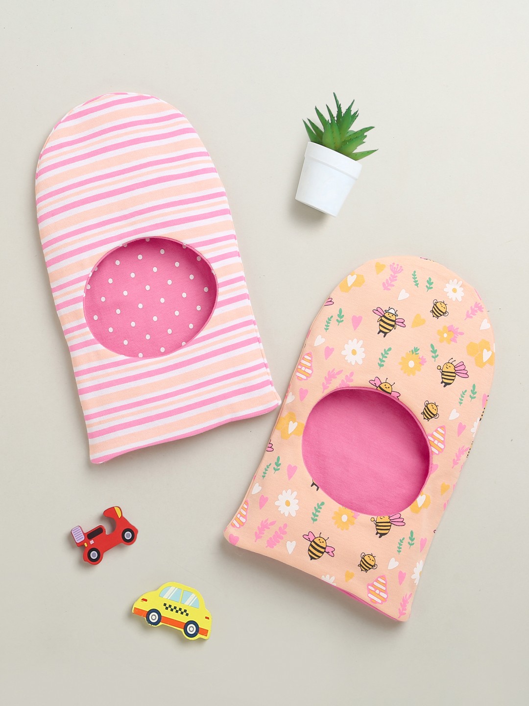 BUMZEE Peach & White Baby Girls Round Cap Pack Of 2