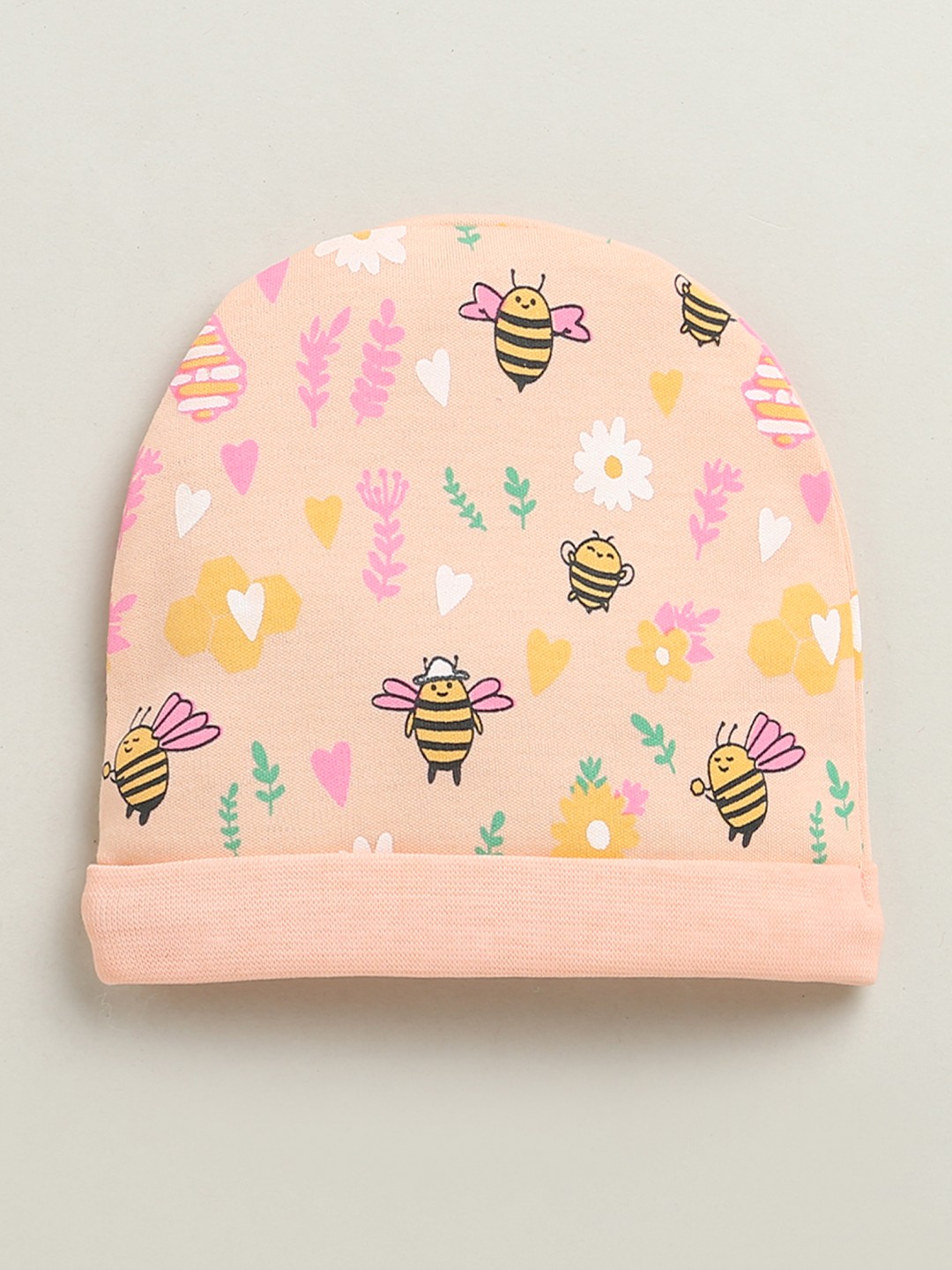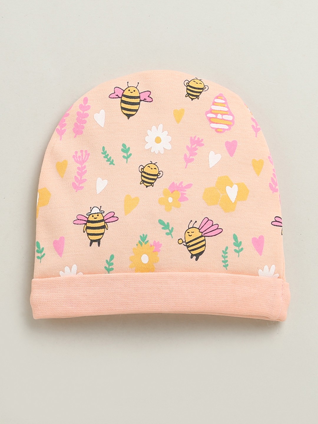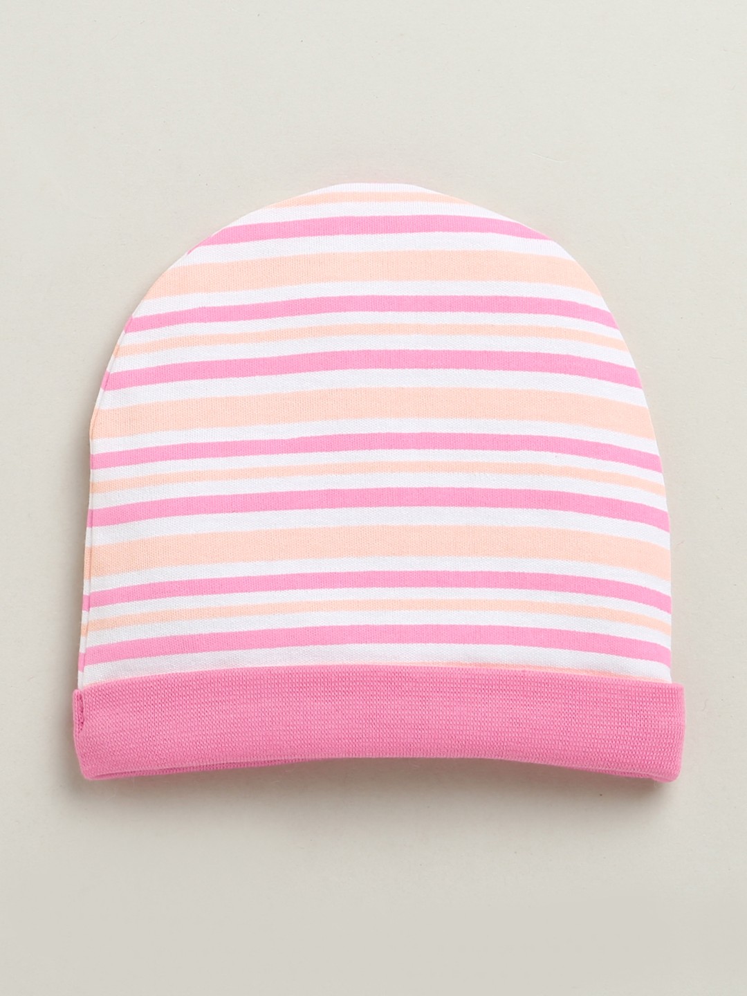 BUMZEE Peach & White Baby Girls Round Cap Pack Of 2