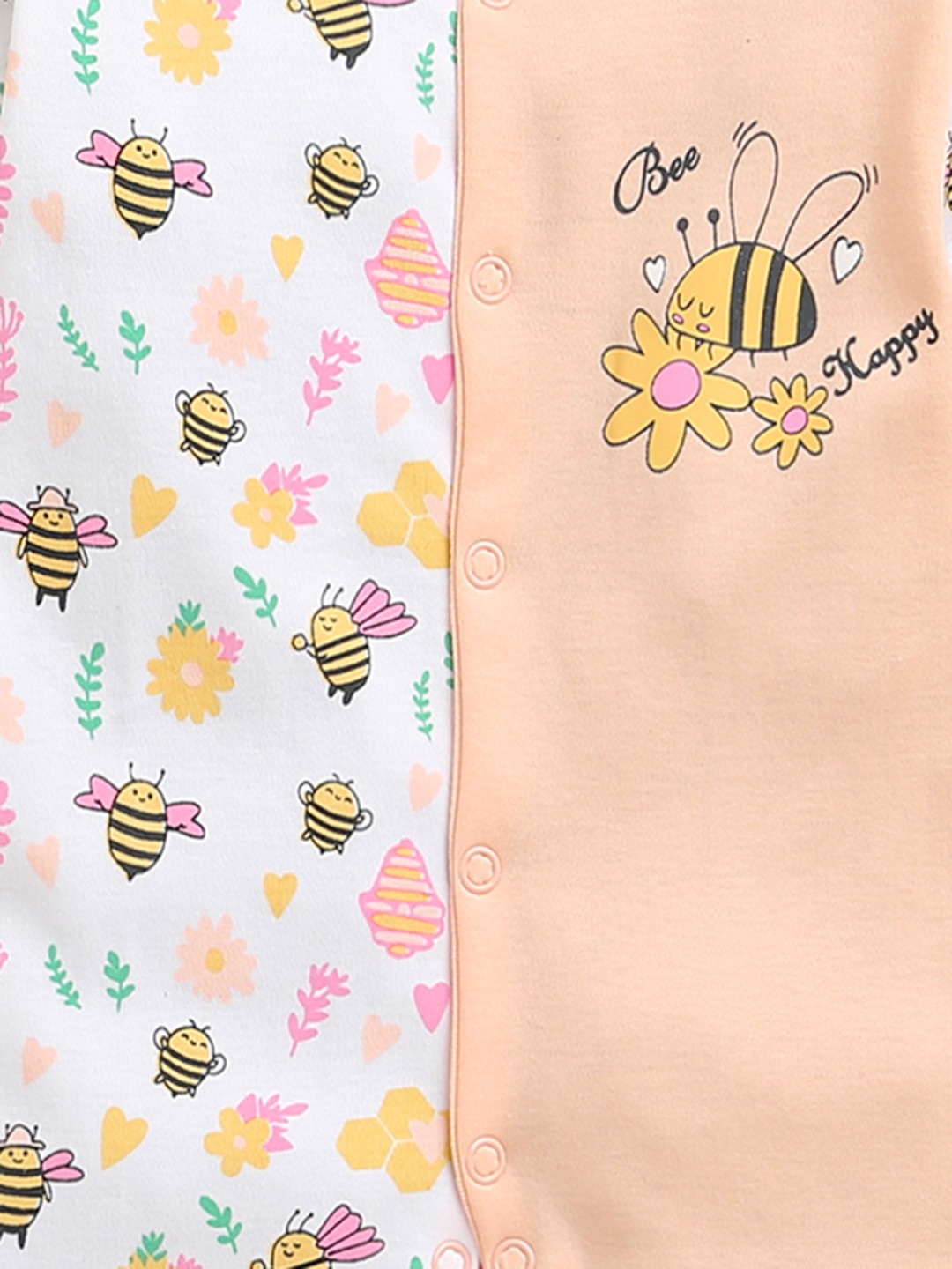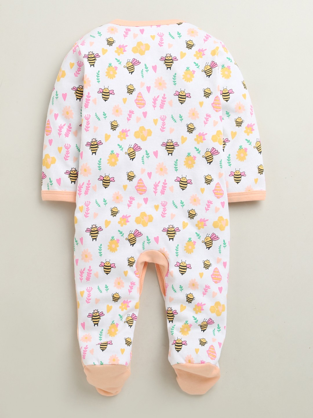 BUMZEE Pink & White Baby Girls Full Sleeves Sleepsuit Pack Of 3