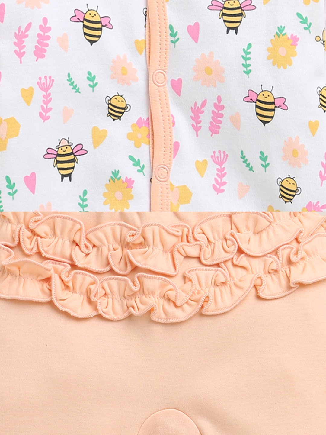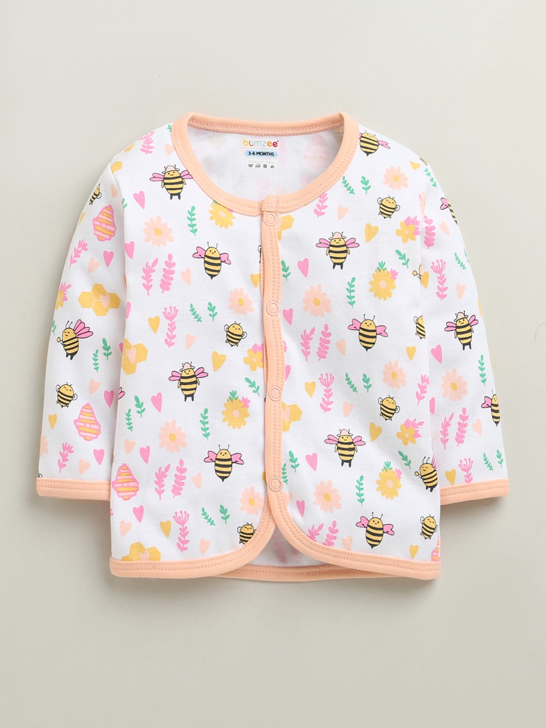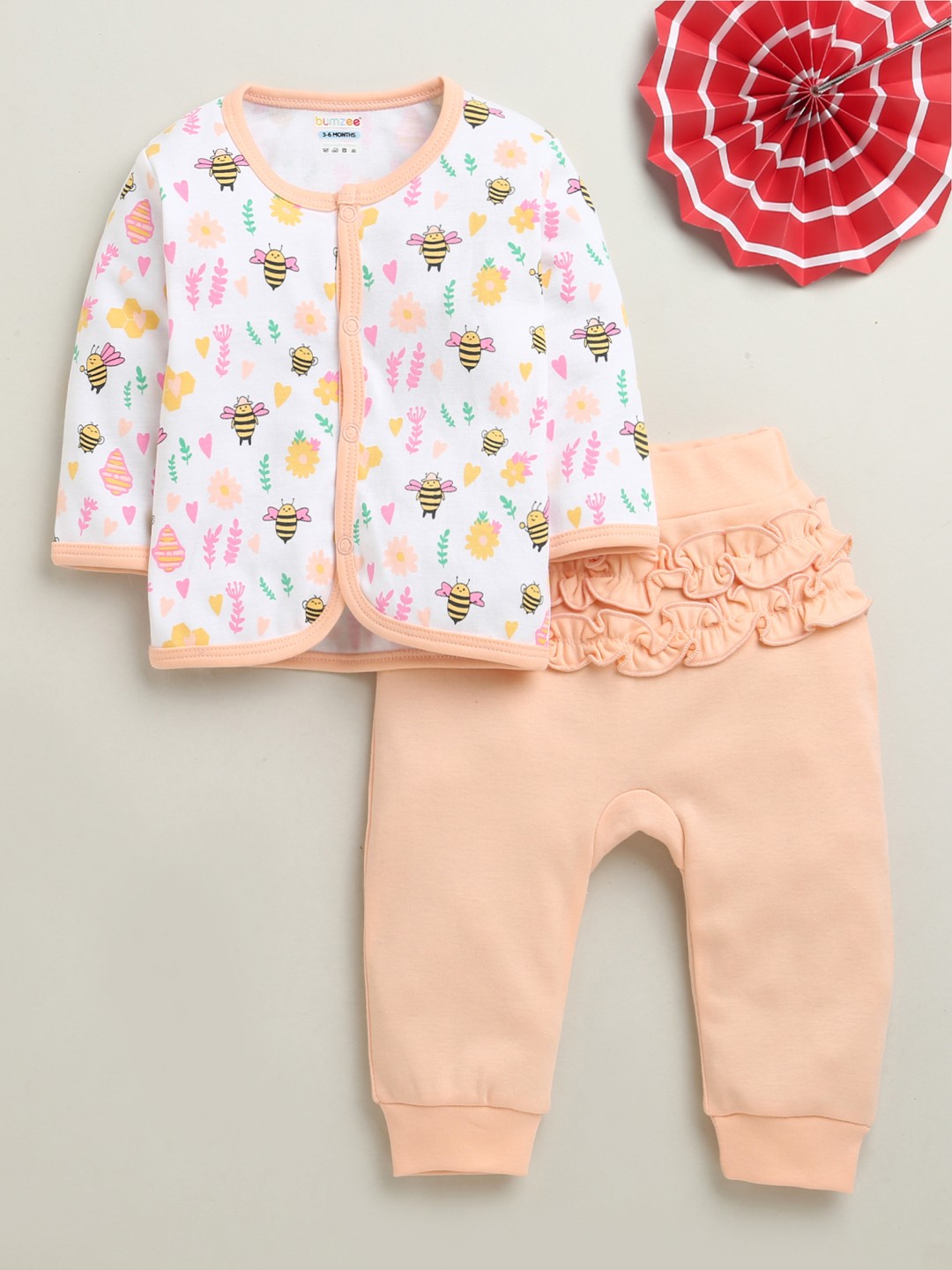 BUMZEE Peach & White Baby Girls Full Sleeves Jabla & Pyjama Set