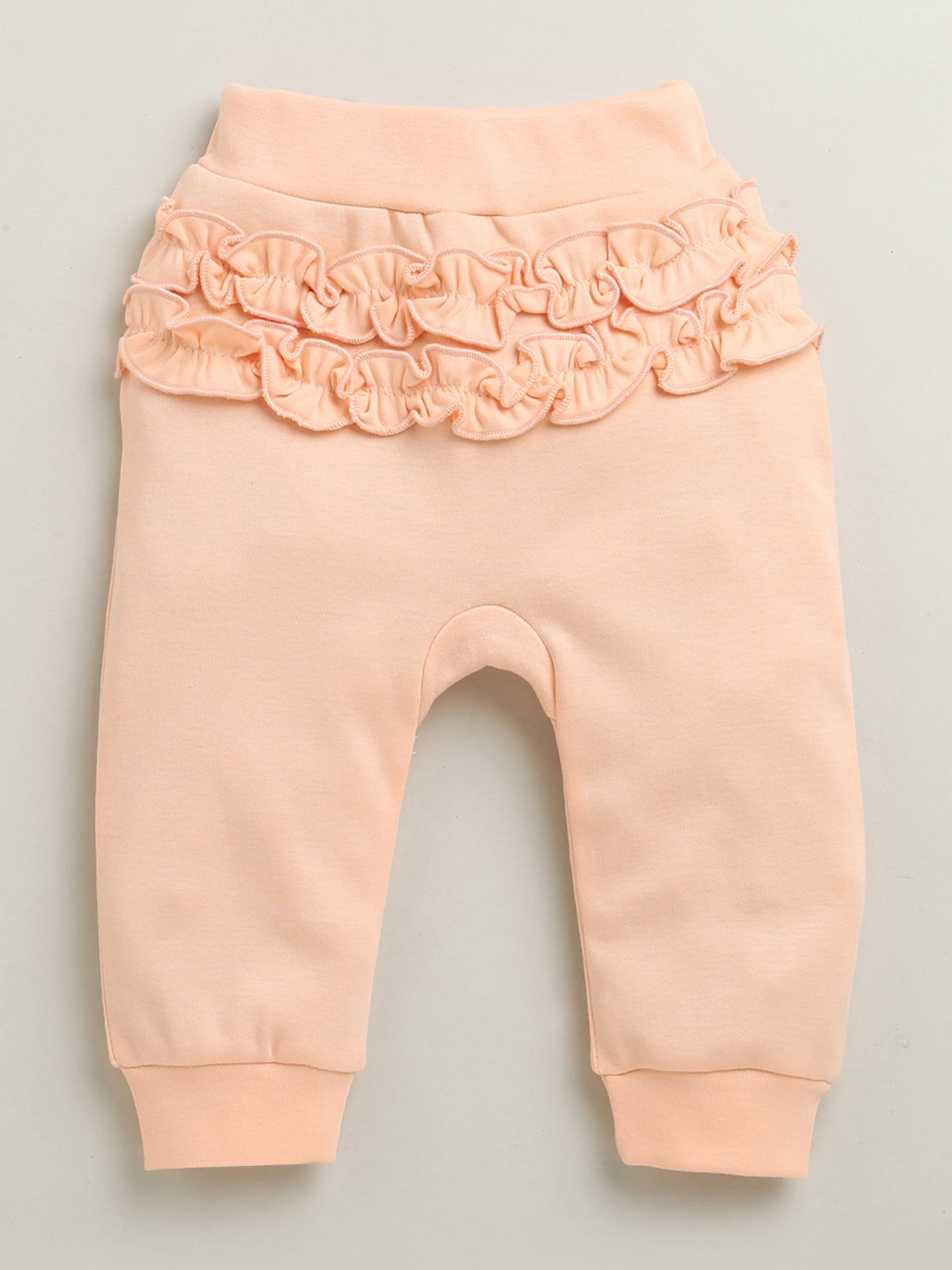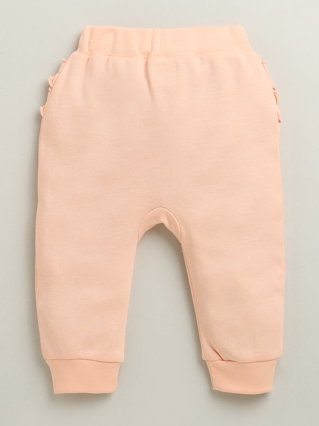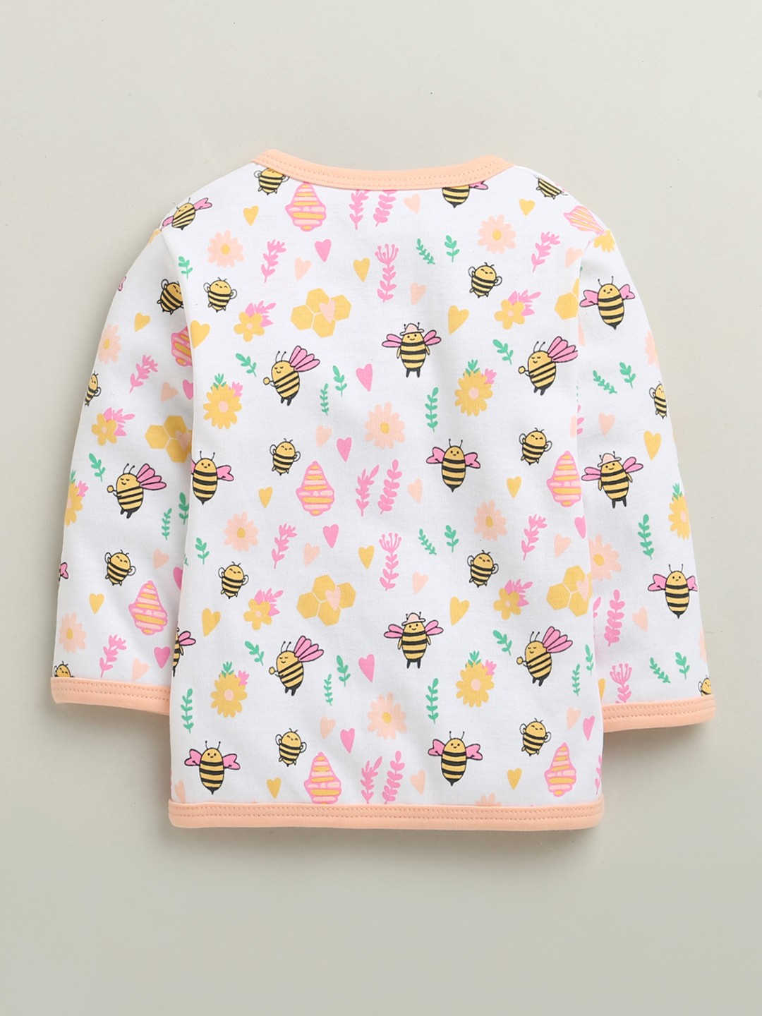 BUMZEE Peach & White Baby Girls Full Sleeves Jabla & Pyjama Set