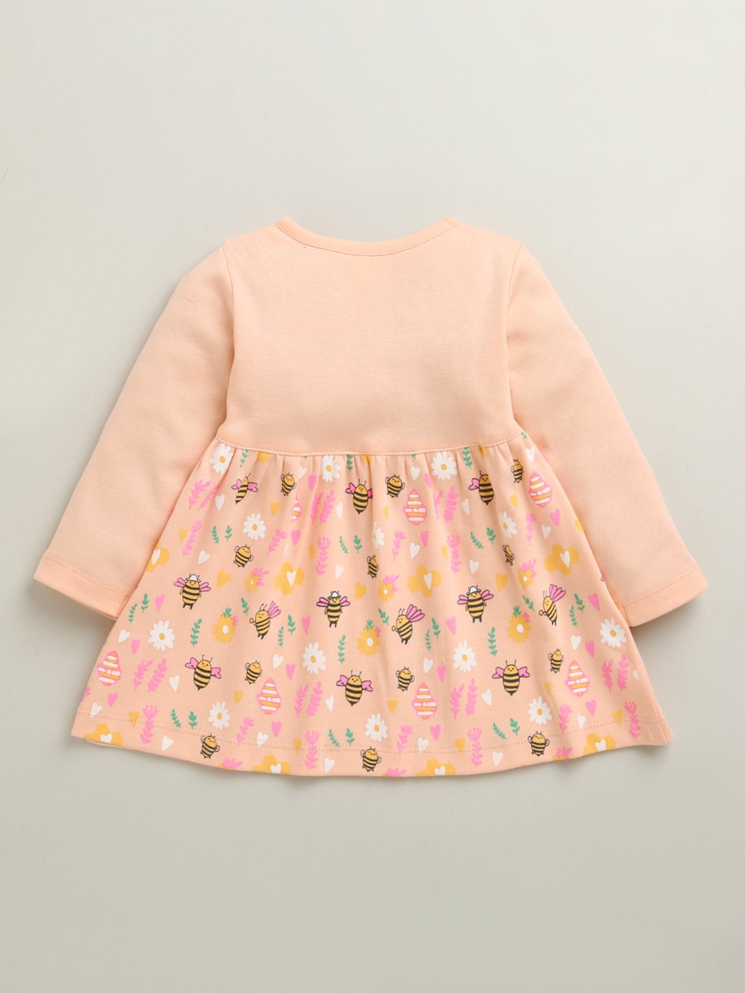 BUMZEE Peach Girls Full Sleeves Poly Blend Frock Dress