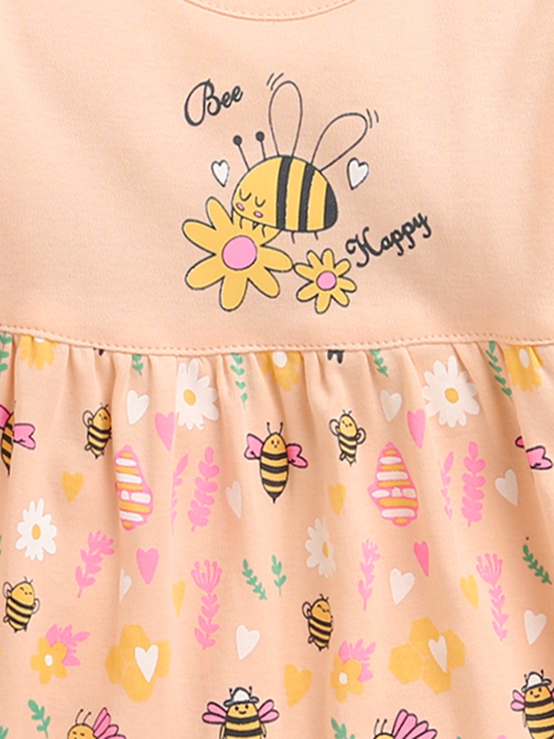 BUMZEE Peach Girls Half Sleeves Cotton Knee Length Frock