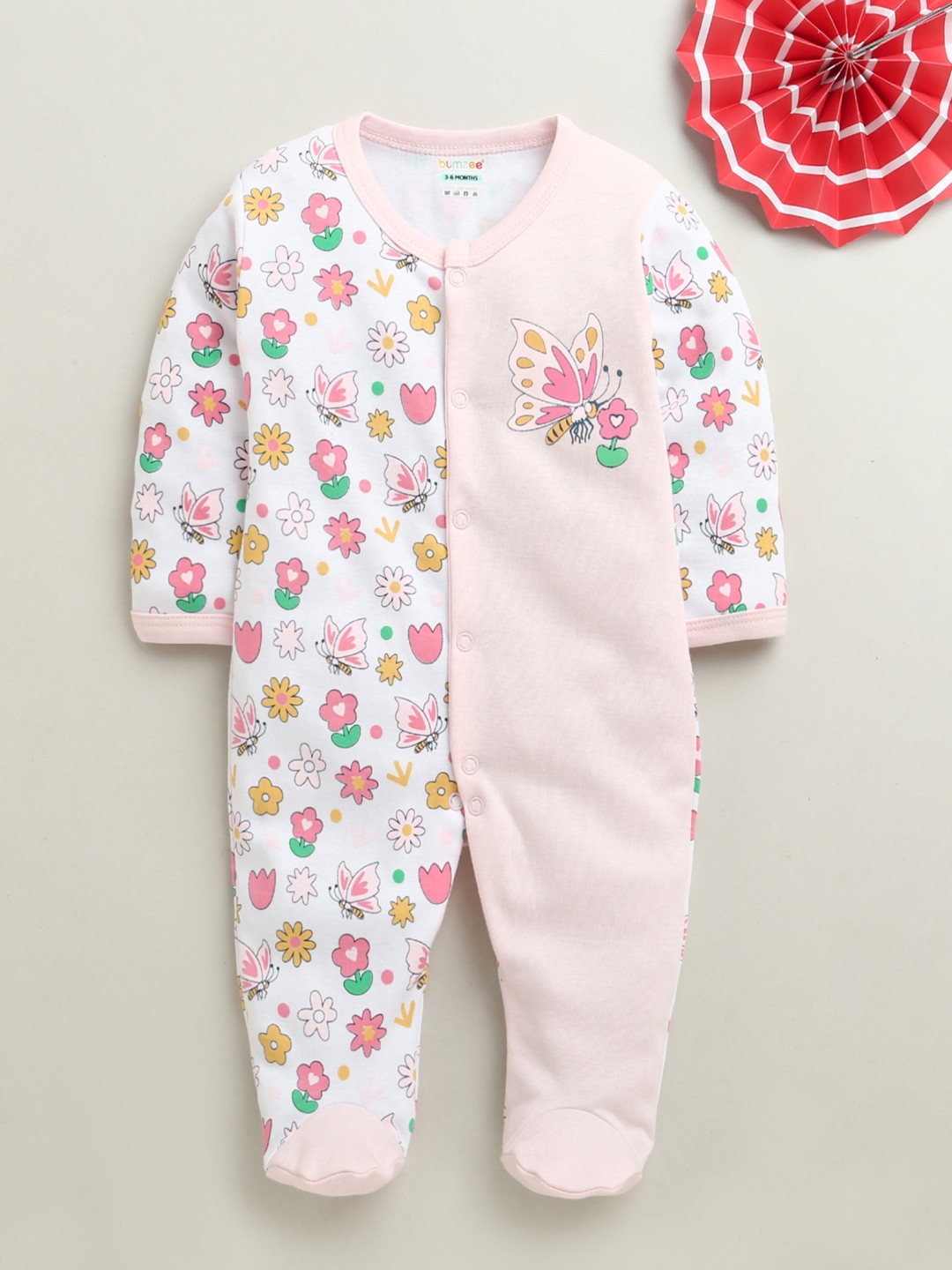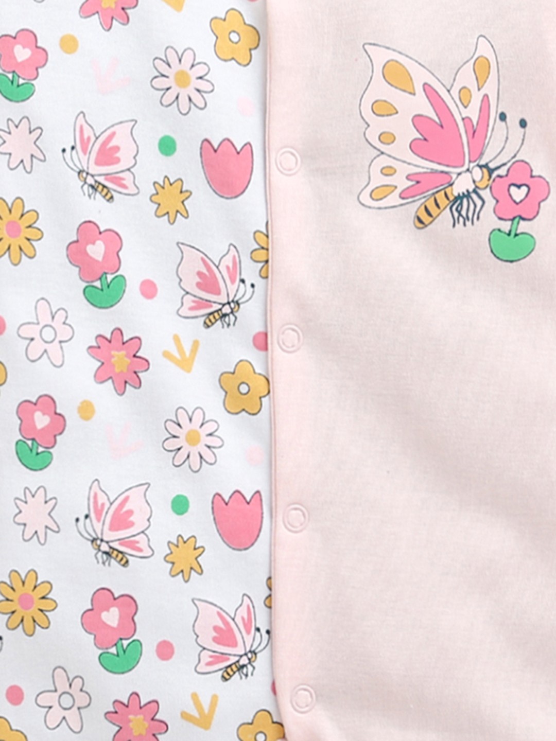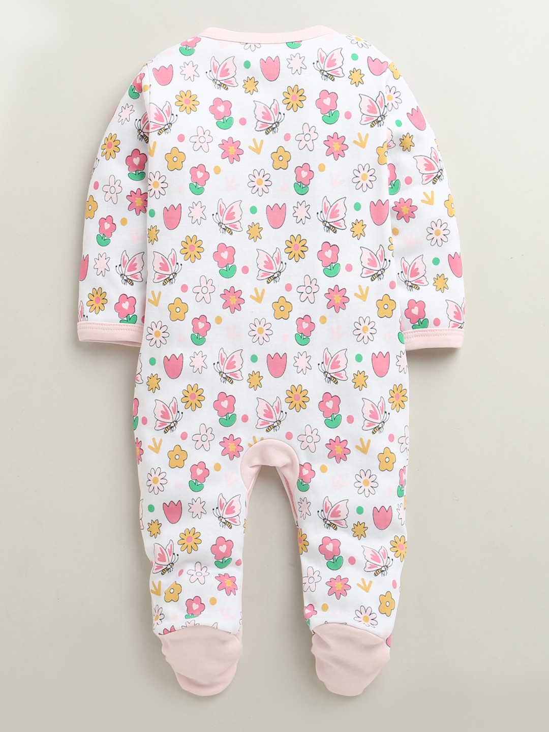 BUMZEE Pink & White Baby Girls Full Sleeves Sleepsuit Pack Of 3