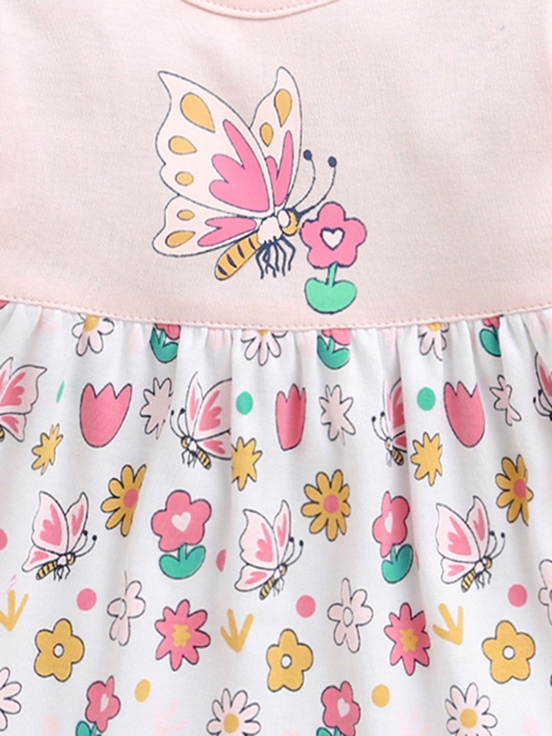 BUMZEE Peach Girls Half Sleeves Cotton Knee Length Frock