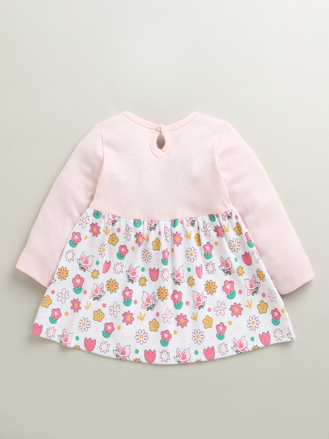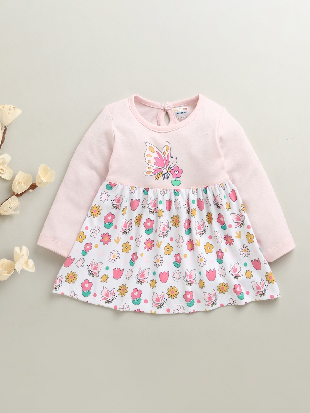 BUMZEE Peach Girls Full Sleeves Cotton Knee Length Frock
