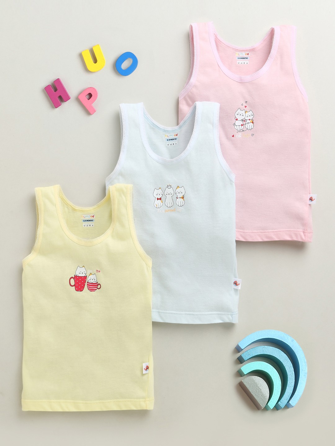 BUMZEE Pink & Yellow Girls Cotton Slips Pack of 3