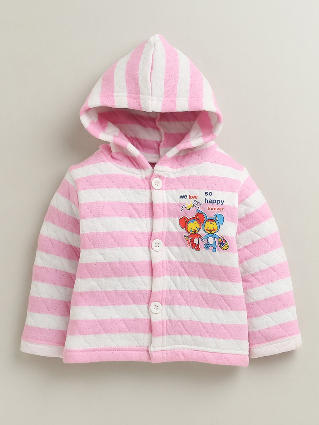 BUMZEE Peach & White Boys Full Sleeves Polyfill Winter Wear Set