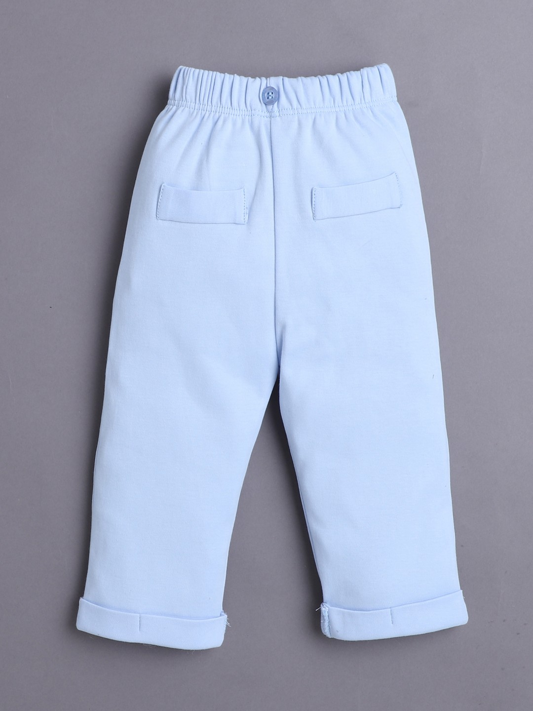 BUMZEE Sky Blue & White Boys Full Sleeves Shirt Waistcoat & Pant Set With Applique Bow