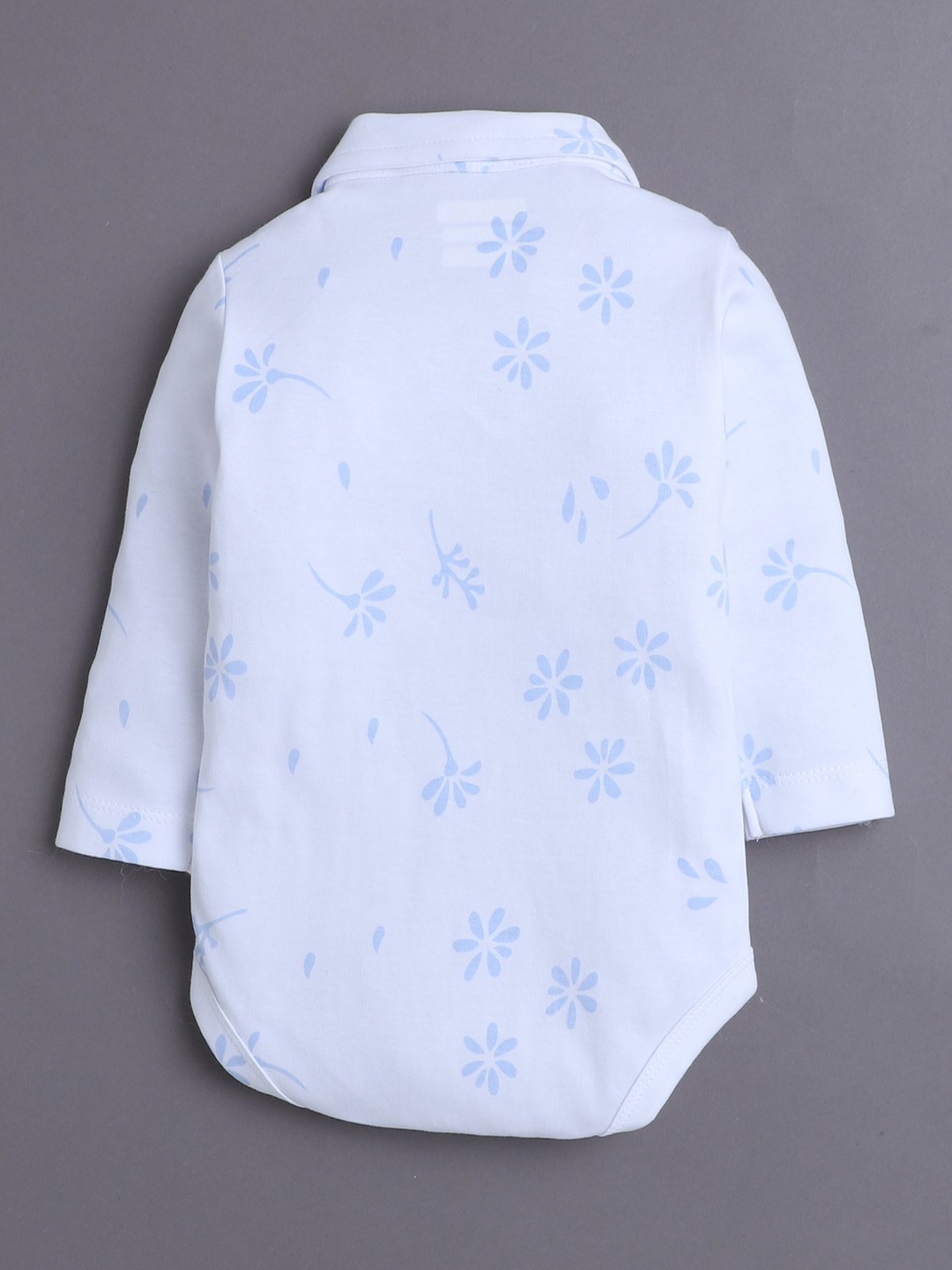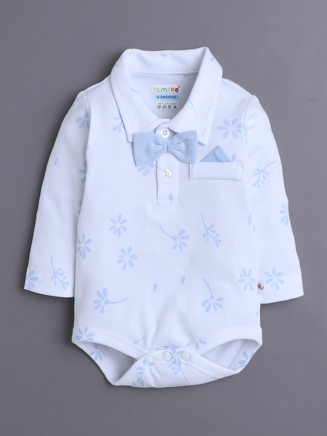 BUMZEE Powder Blue & White Boys Full Sleeves Shirt Waistcoat & Pant Set With Applique Bow