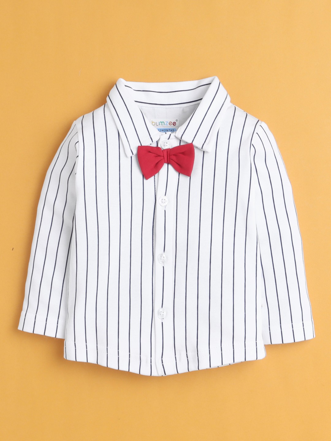 BUMZEE Maroon & White Boys Full Sleeves Shirt Waistcoat & Short Set With Applique Bow
