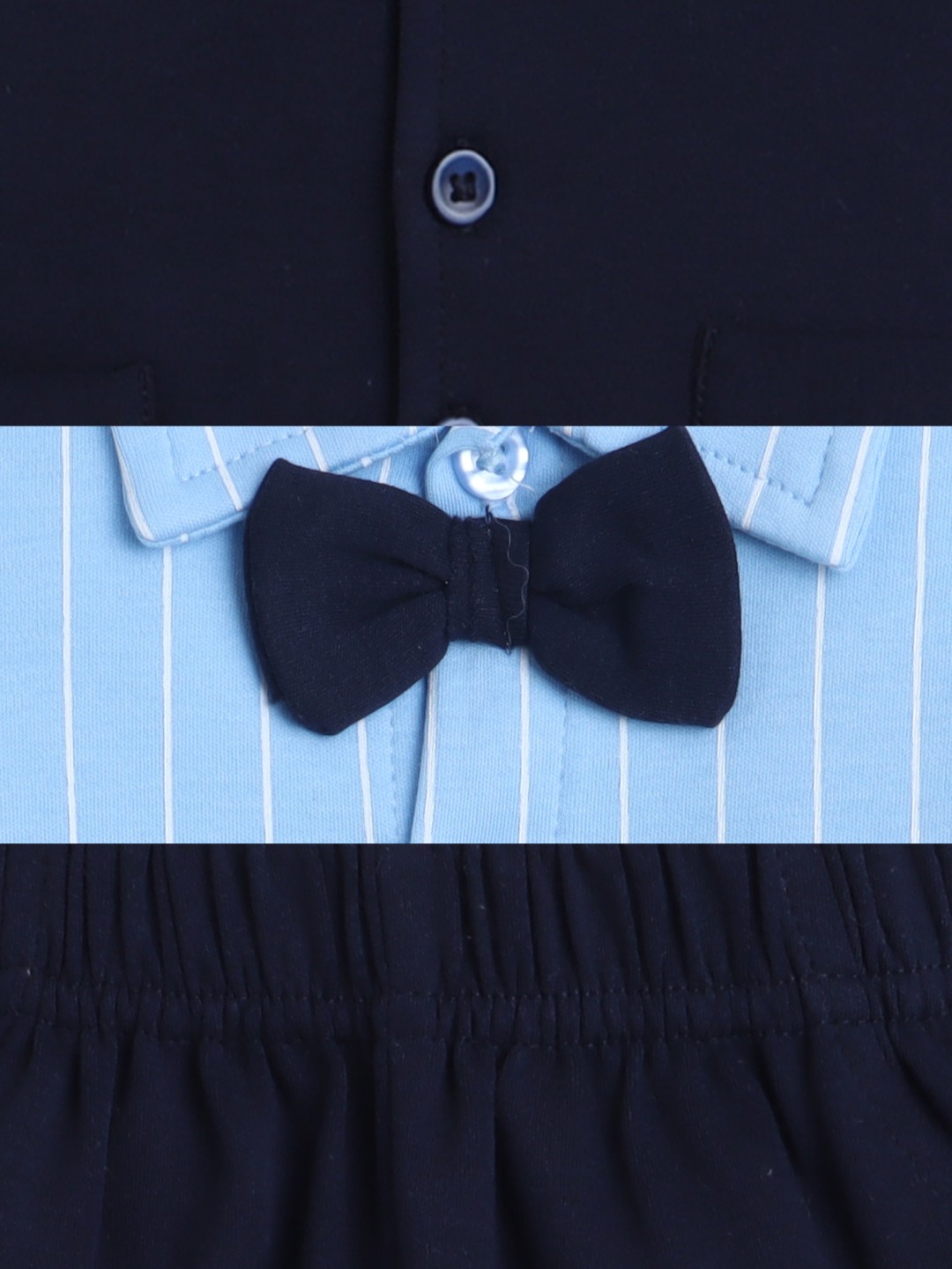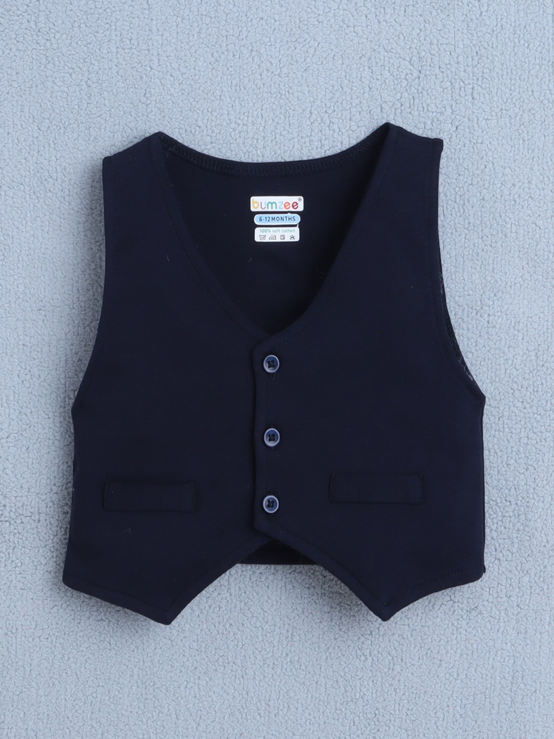 BUMZEE Navy & White Boys Full Sleeves Shirt Waistcoat & Short Set With Applique Bow