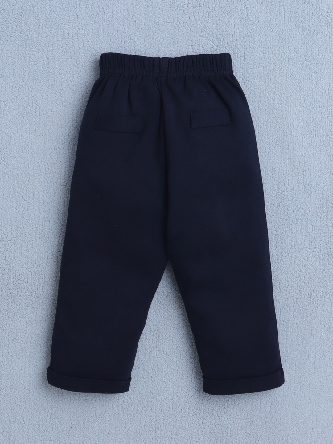 BUMZEE Navy & White Boys Full Sleeves Shirt Pant Set With Suspender & Cap