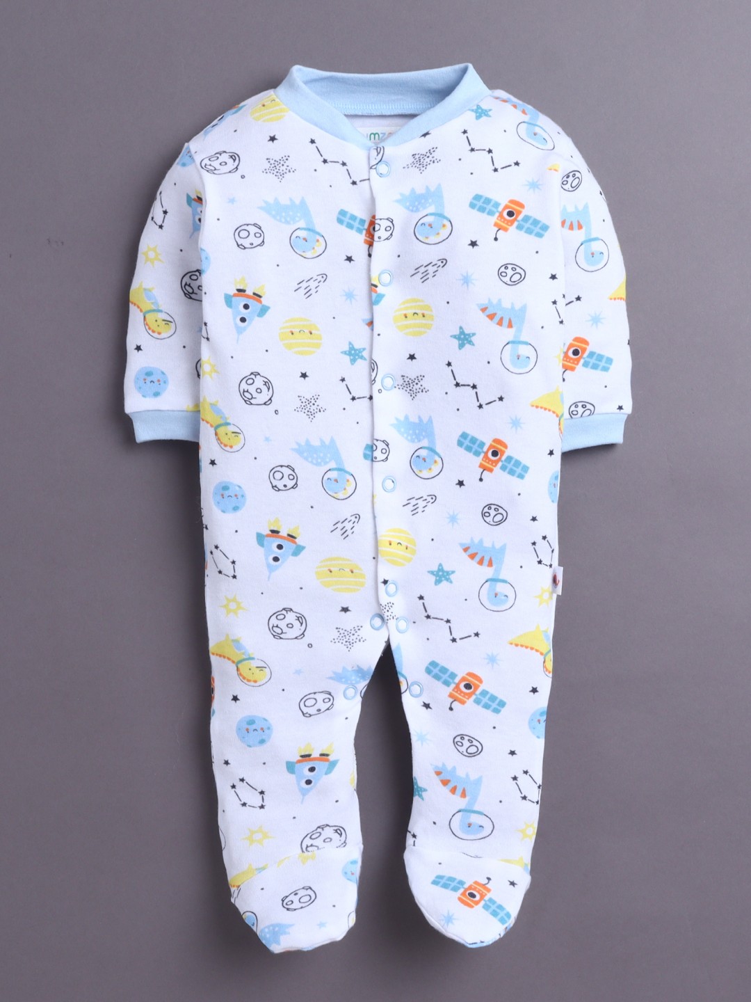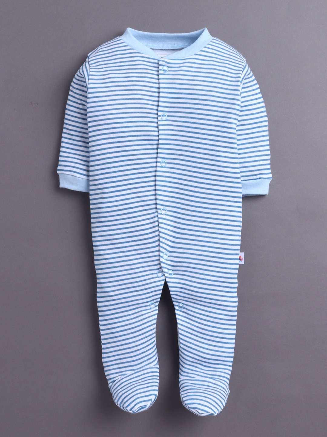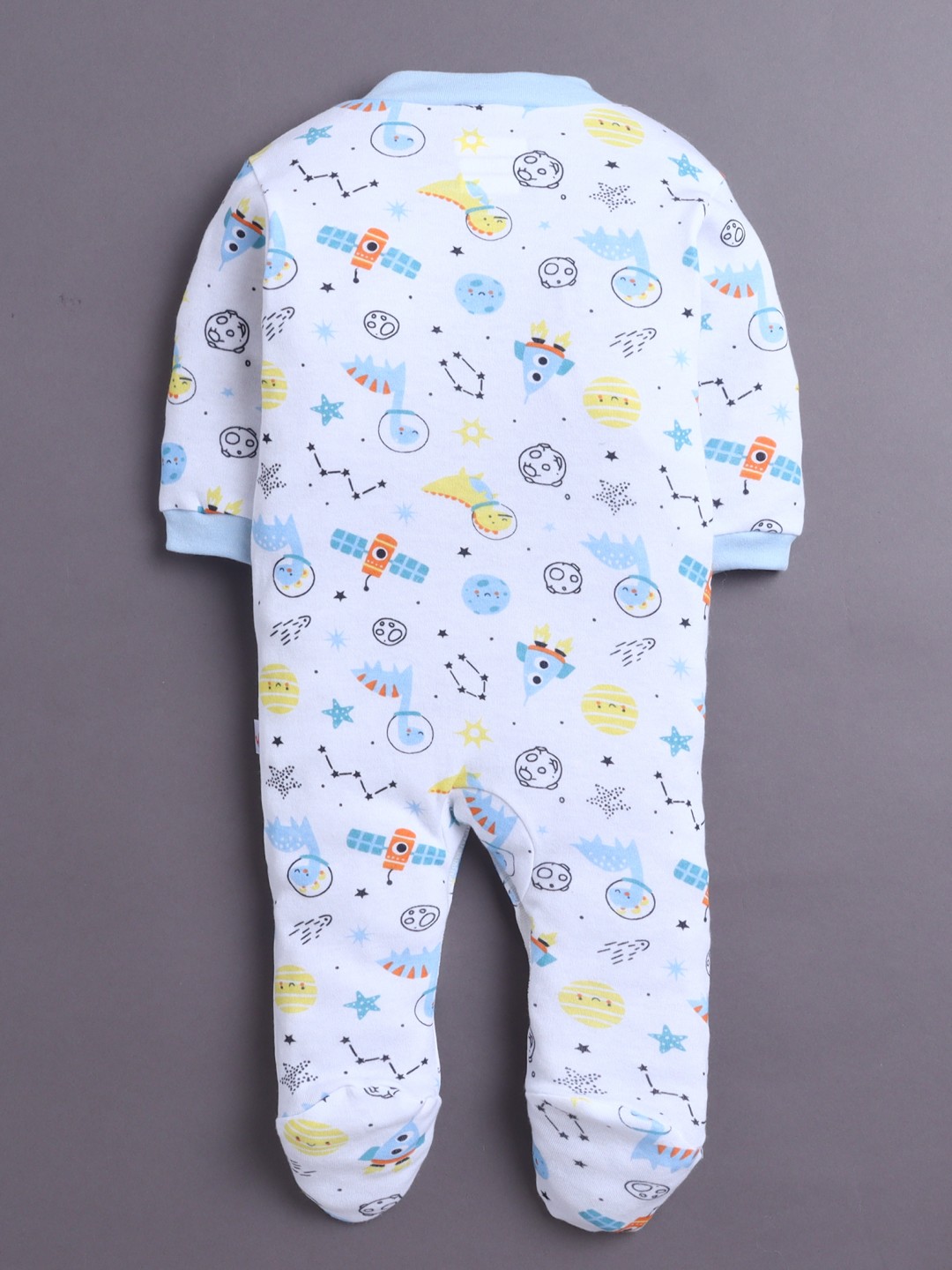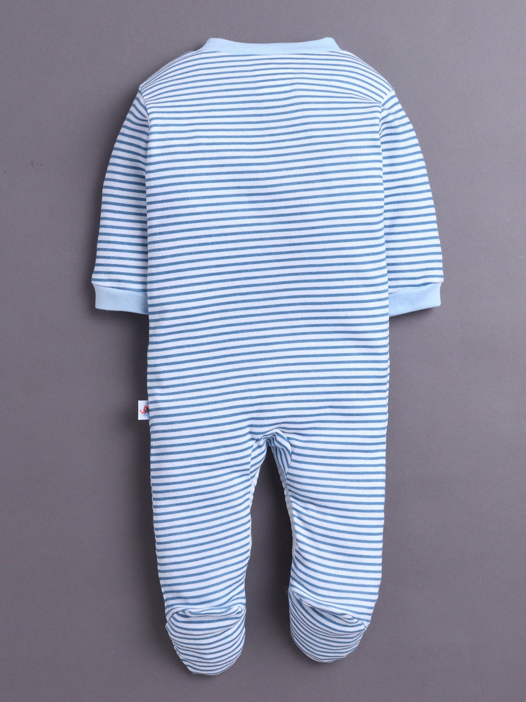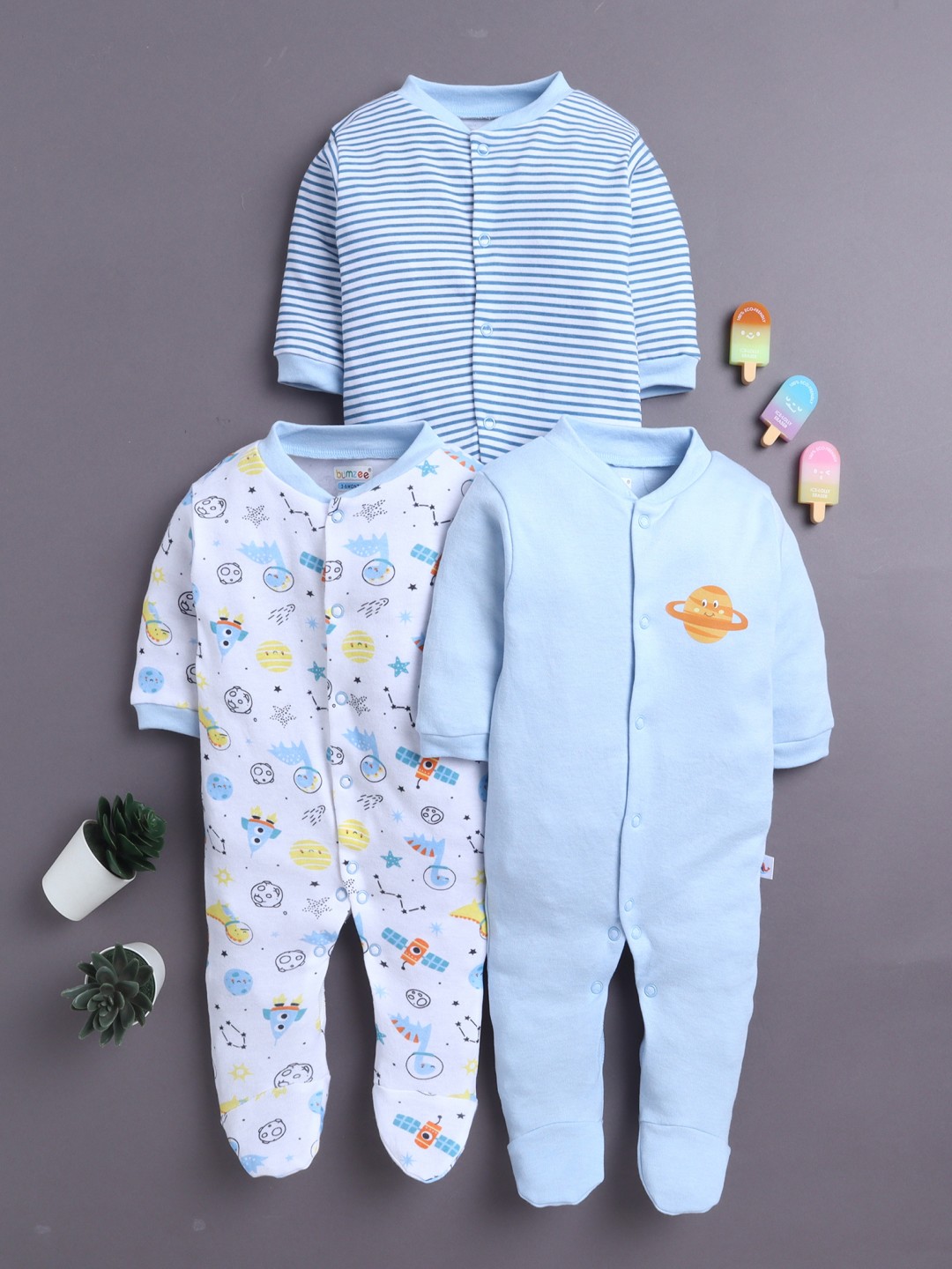 BUMZEE Sky Blue & White Baby Boys Full Sleeves Sleepsuit Pack Of 3