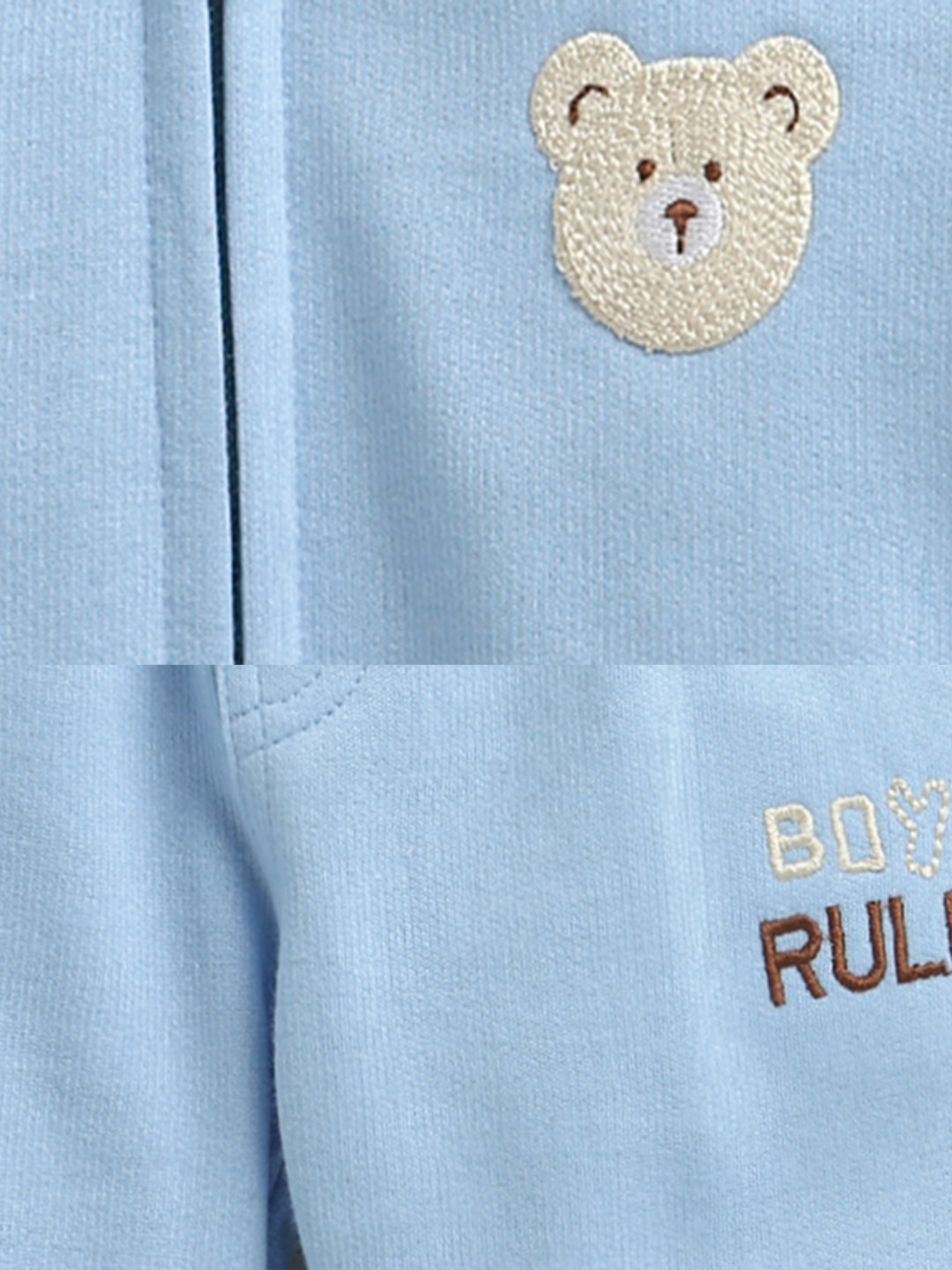 BUMZEE Sky Blue Boys Full Sleeves Fleece Winter Wear Set