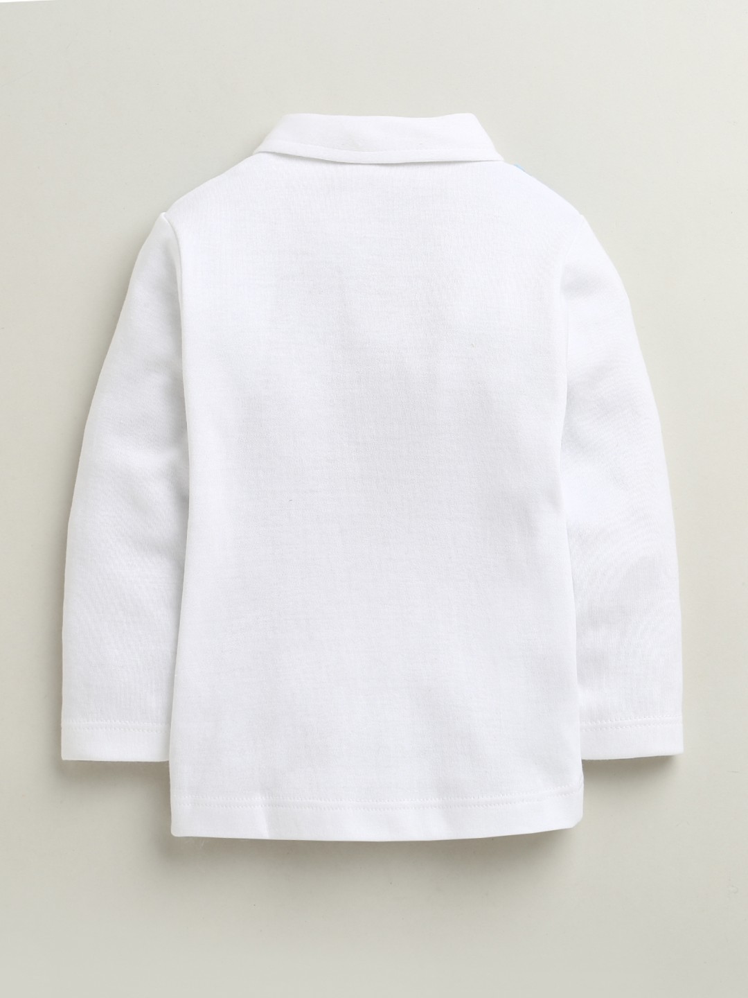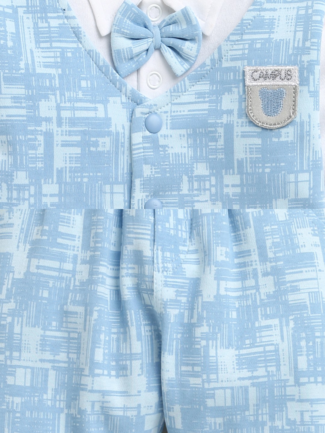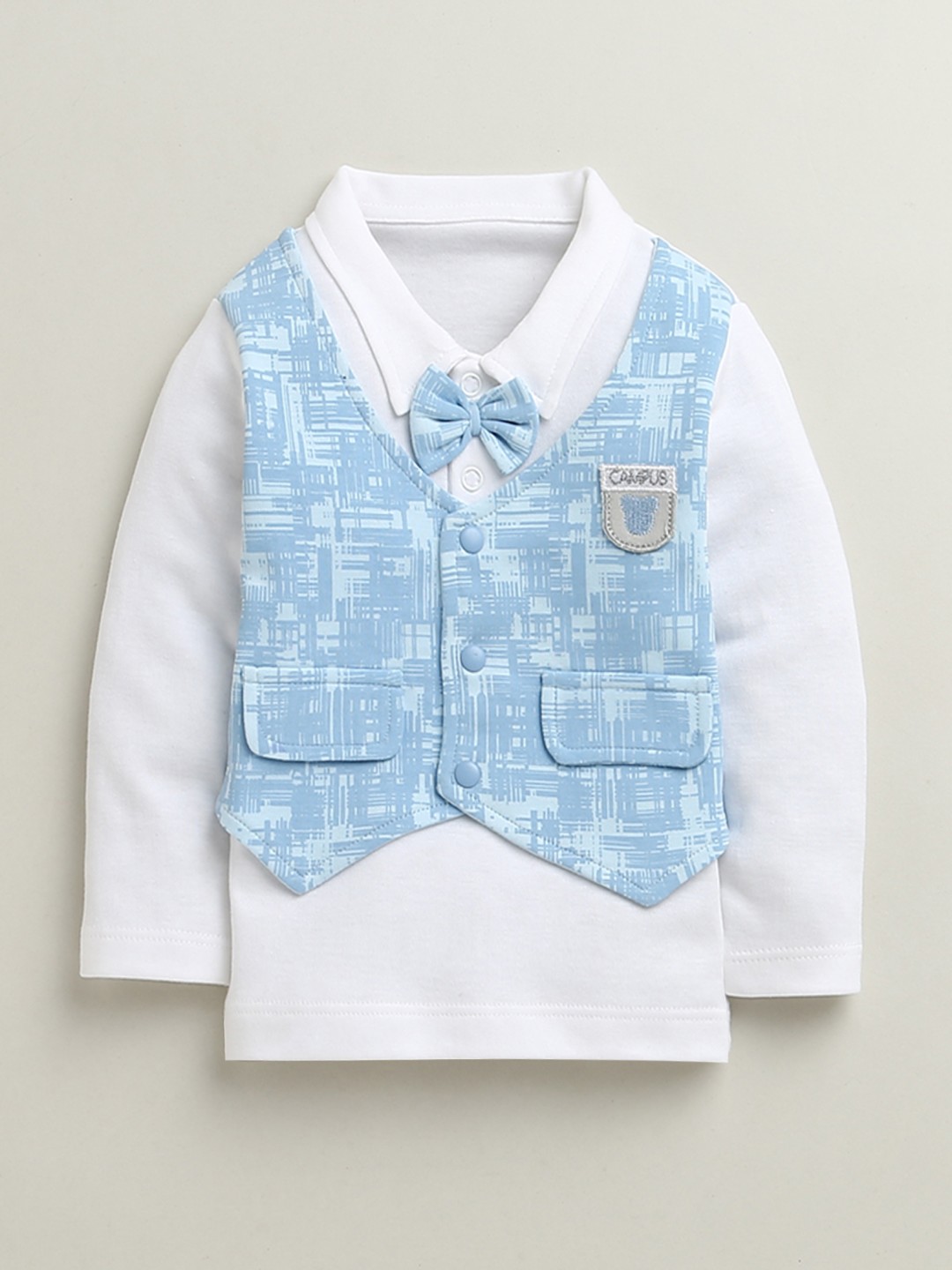 BUMZEE Sky Blue & White Boys Full Sleeves Shirt Waistcoat & Pant Set With Applique Bow
