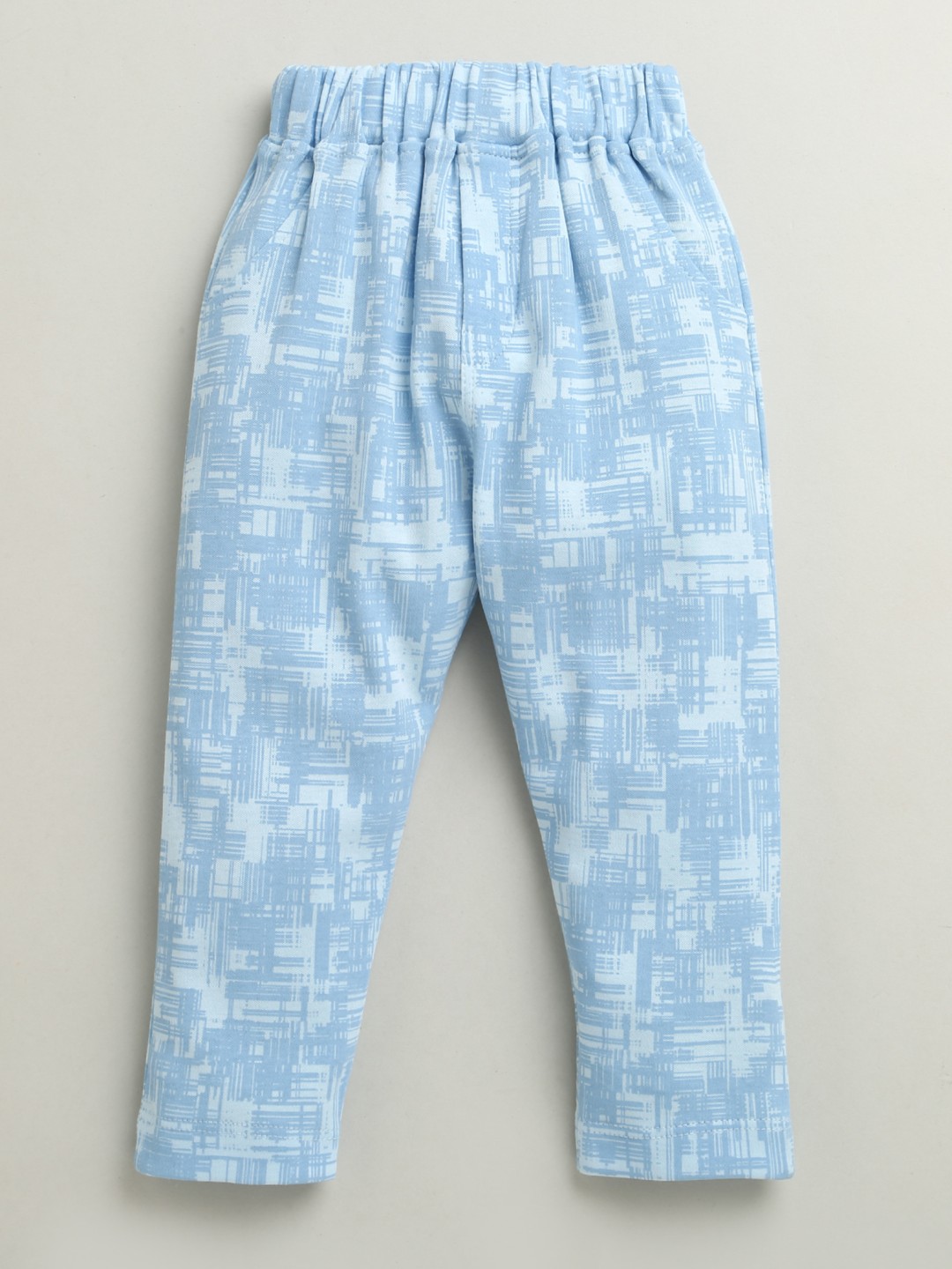 BUMZEE Sky Blue & White Boys Full Sleeves Shirt Pant Set With Suspender & Cap