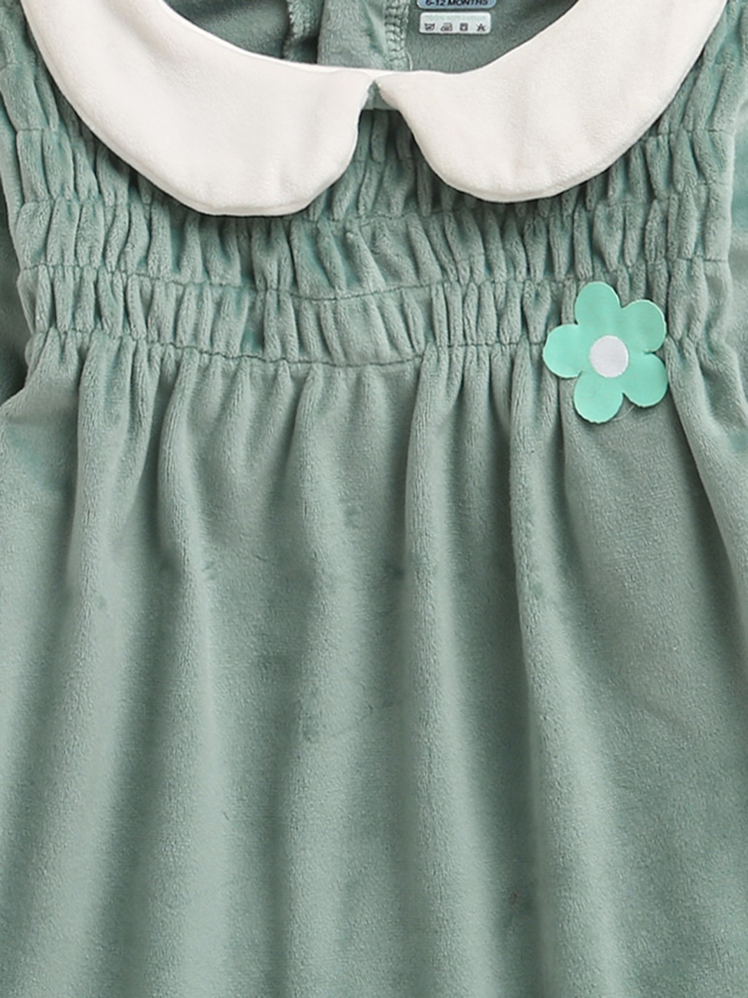 BUMZEE Mint Green Girls Full Sleeves Poly Blend Frock Dress