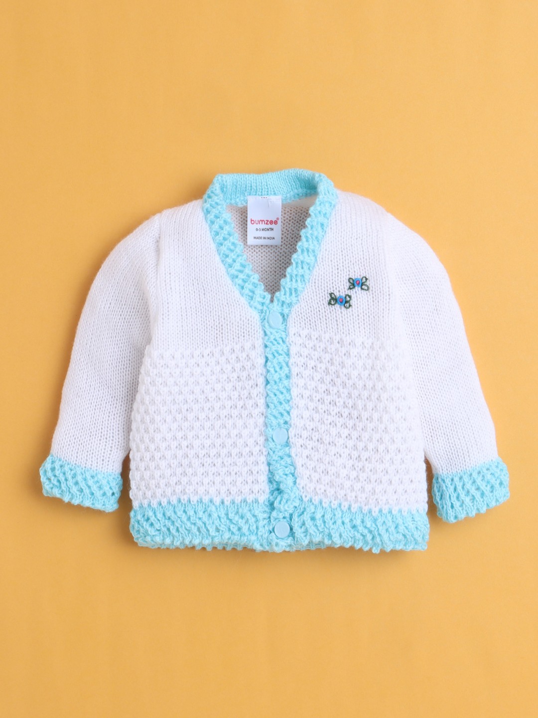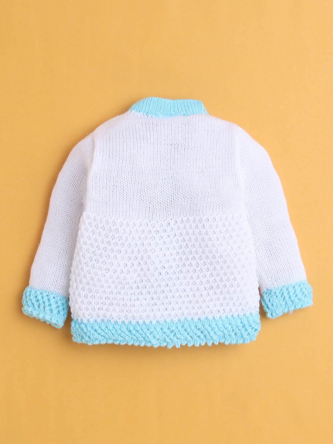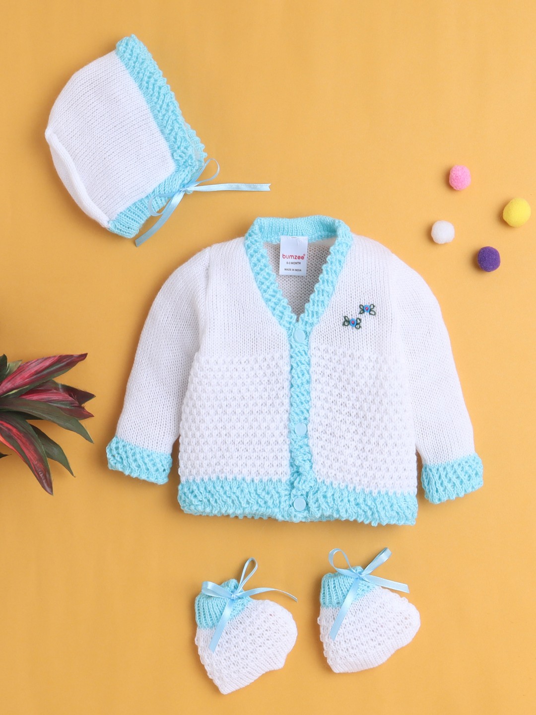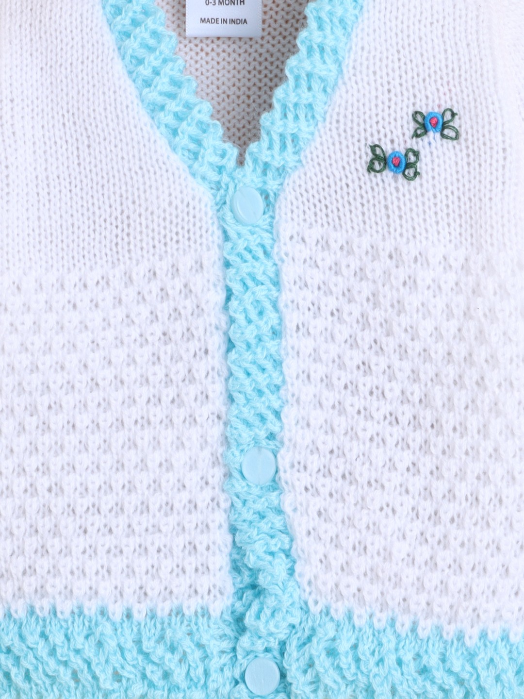 BUMZEE Aqua Baby Boys Full Sleeves Acrylic Blend Sweater With Cap & Socks
