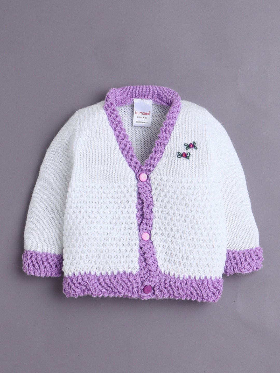 BUMZEE Lavender Baby Girls Full Sleeves Acrylic Blend Sweater With Cap & Socks