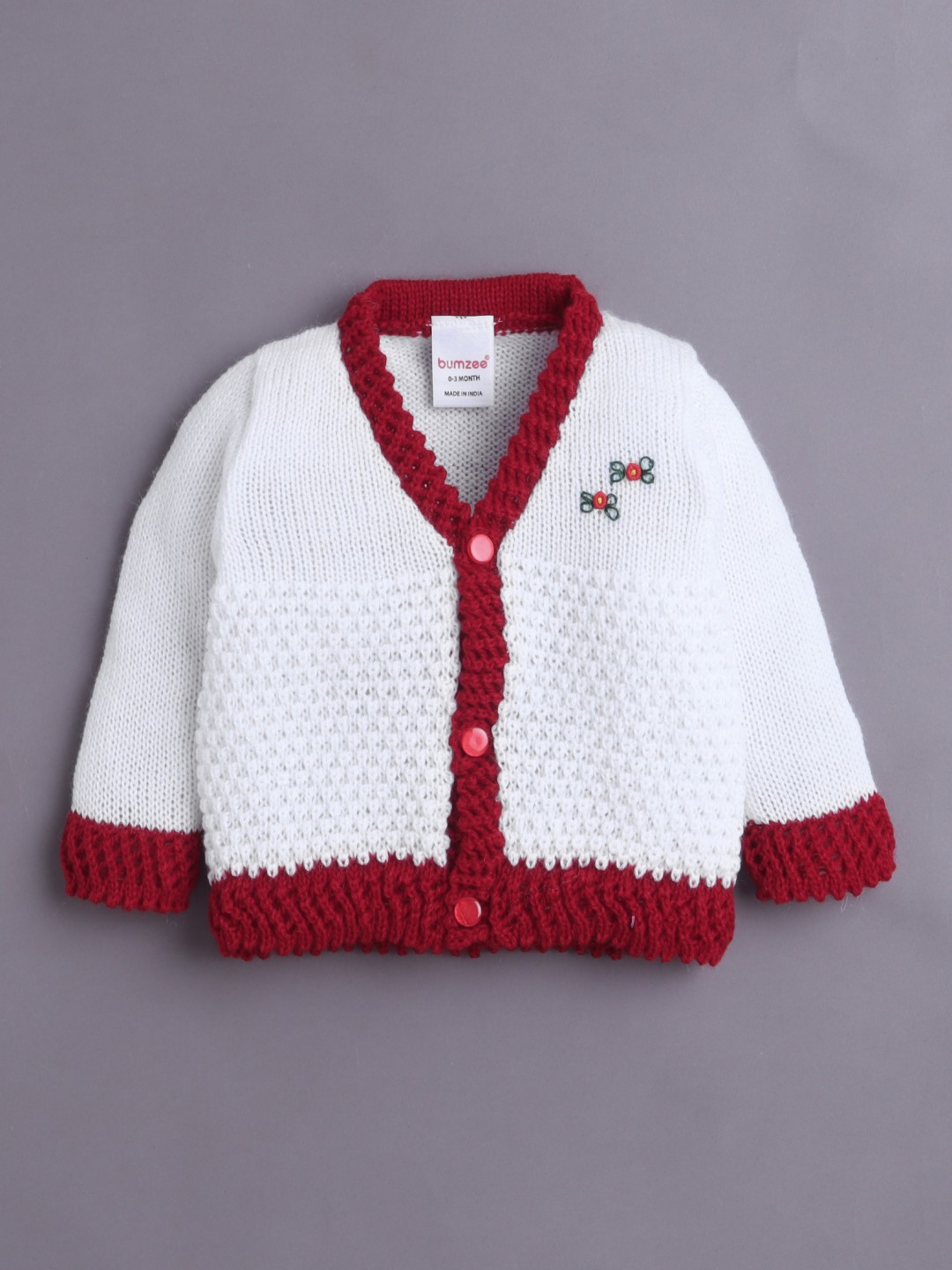BUMZEE Red Baby Boys Full Sleeves Acrylic Blend Sweater With Cap & Socks
