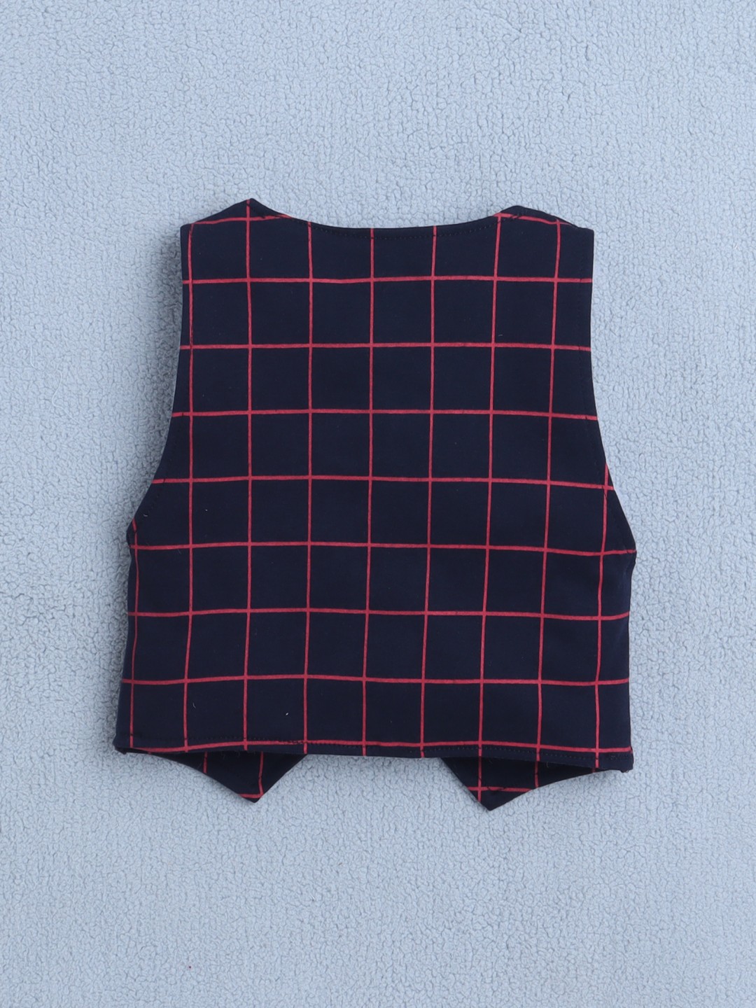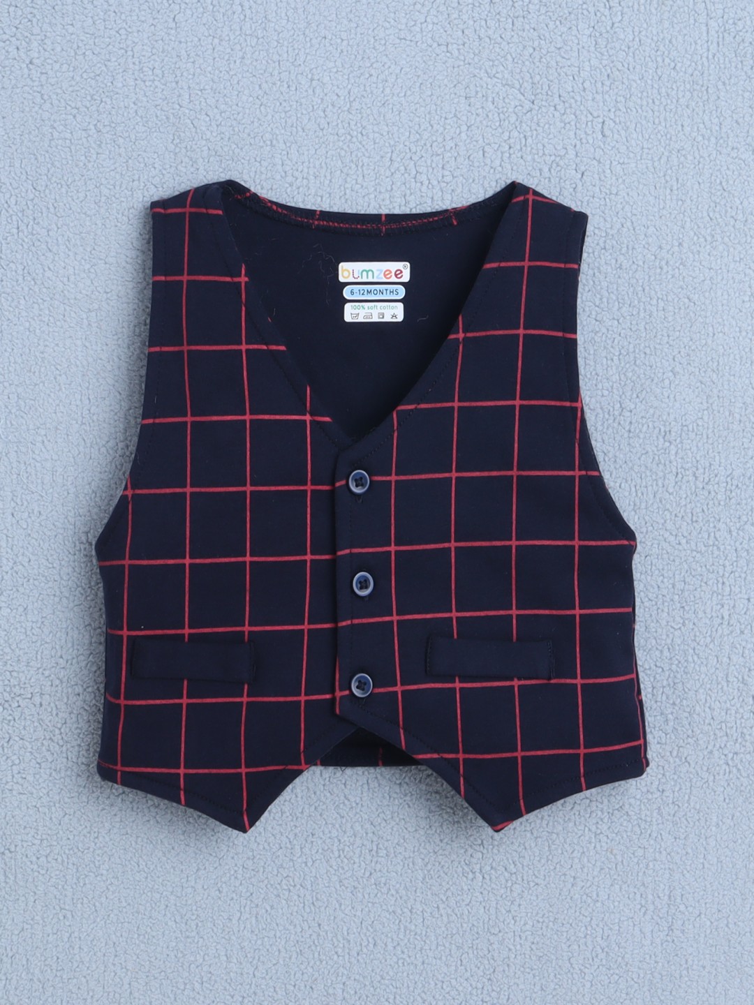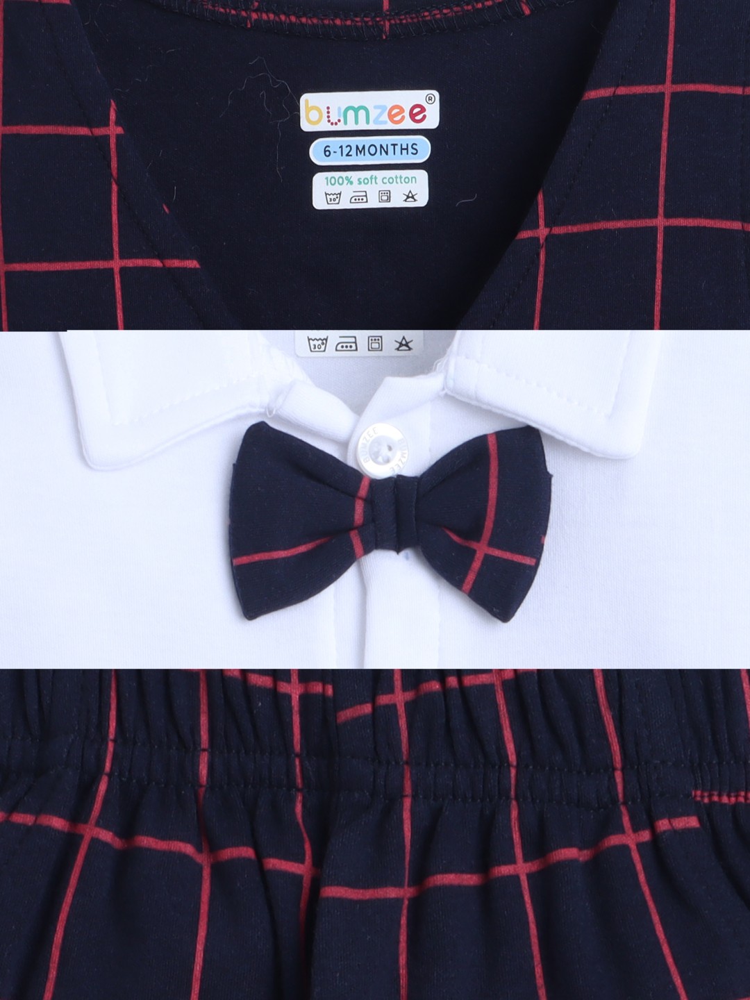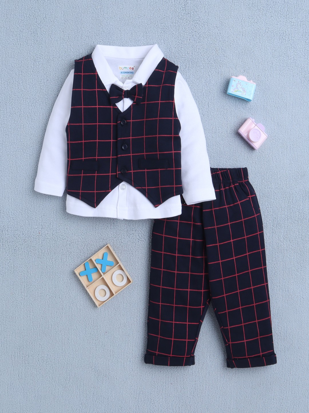BUMZEE Navy & White Boys Full Sleeves Shirt Waistcoat & Short Set With Applique Bow