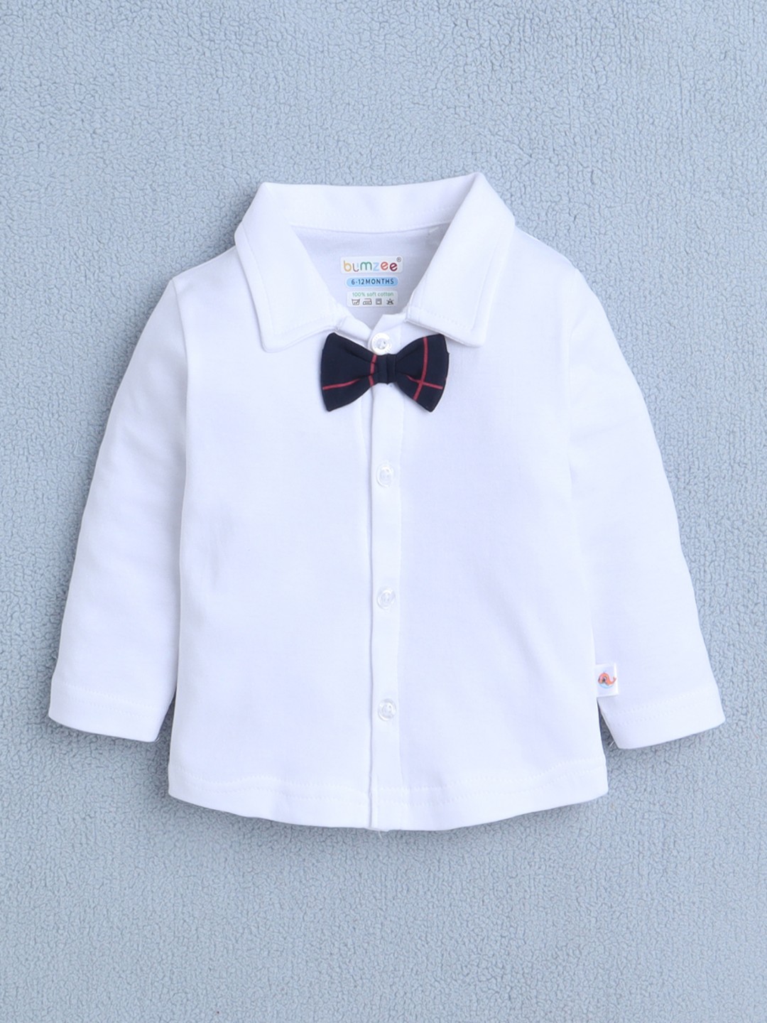 BUMZEE Maroon & White Boys Full Sleeves Shirt Waistcoat & Short Set With Applique Bow