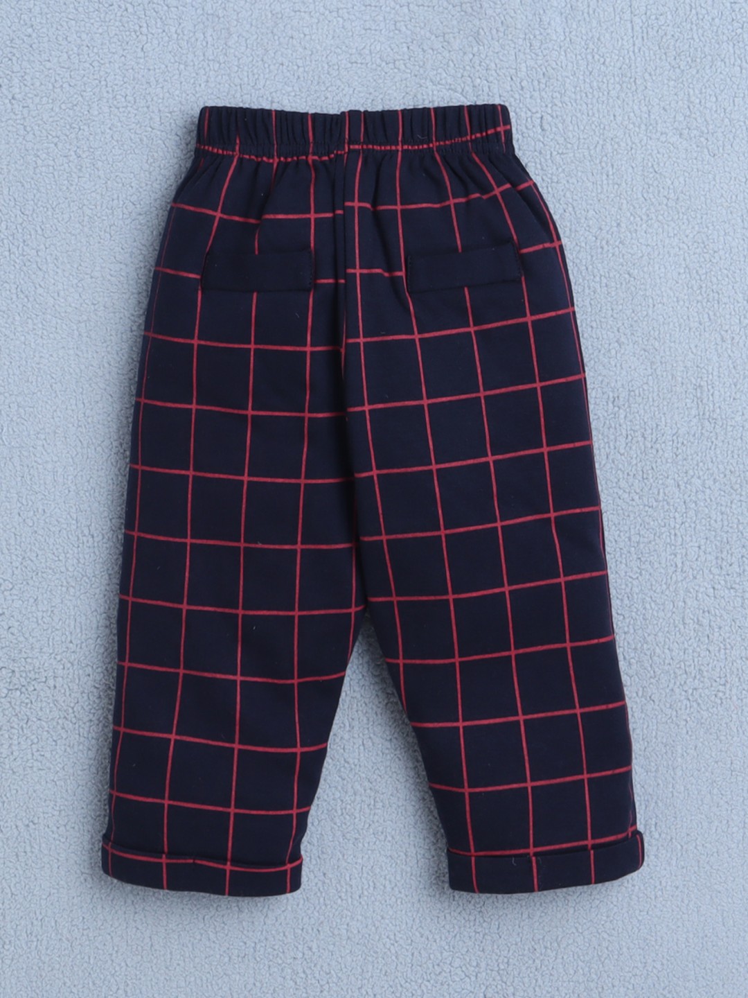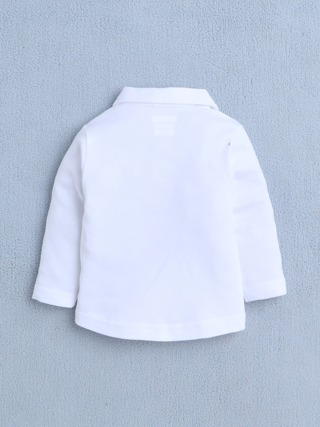 BUMZEE Navy & White Boys Full Sleeves Shirt Pant Set With Suspender & Cap