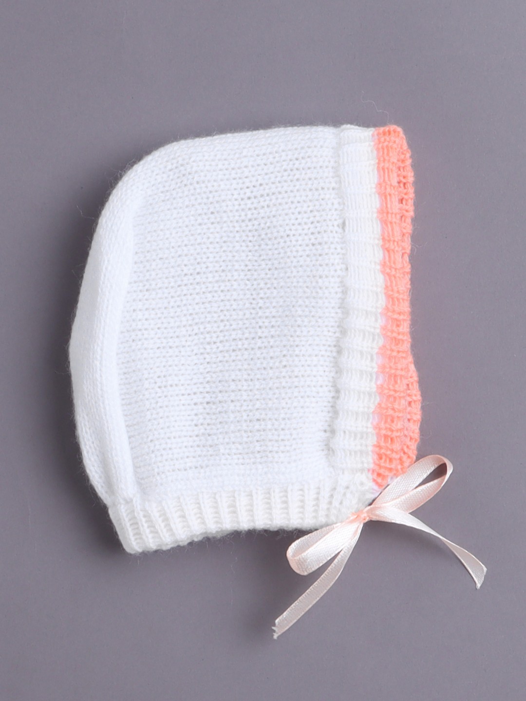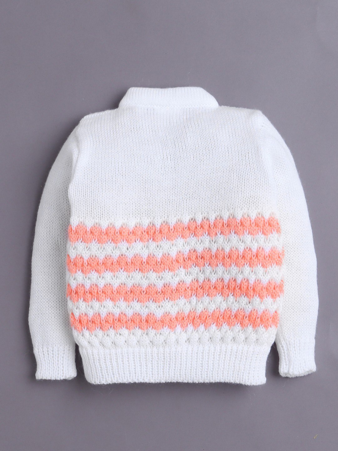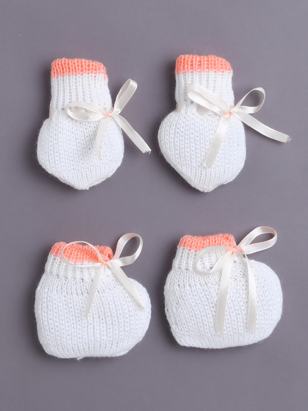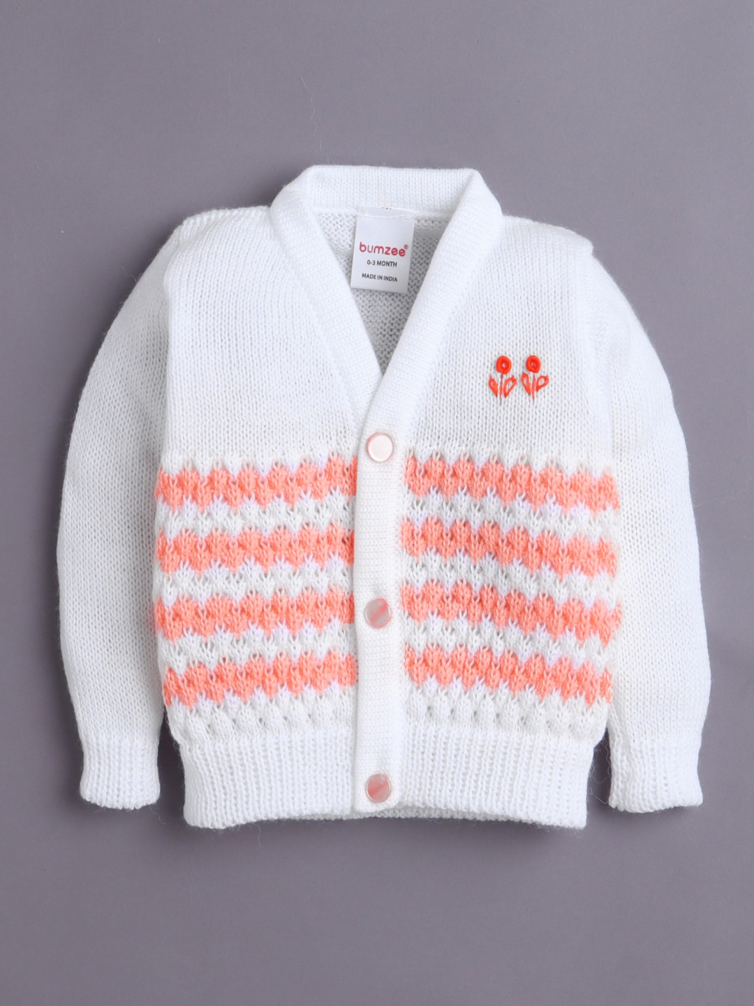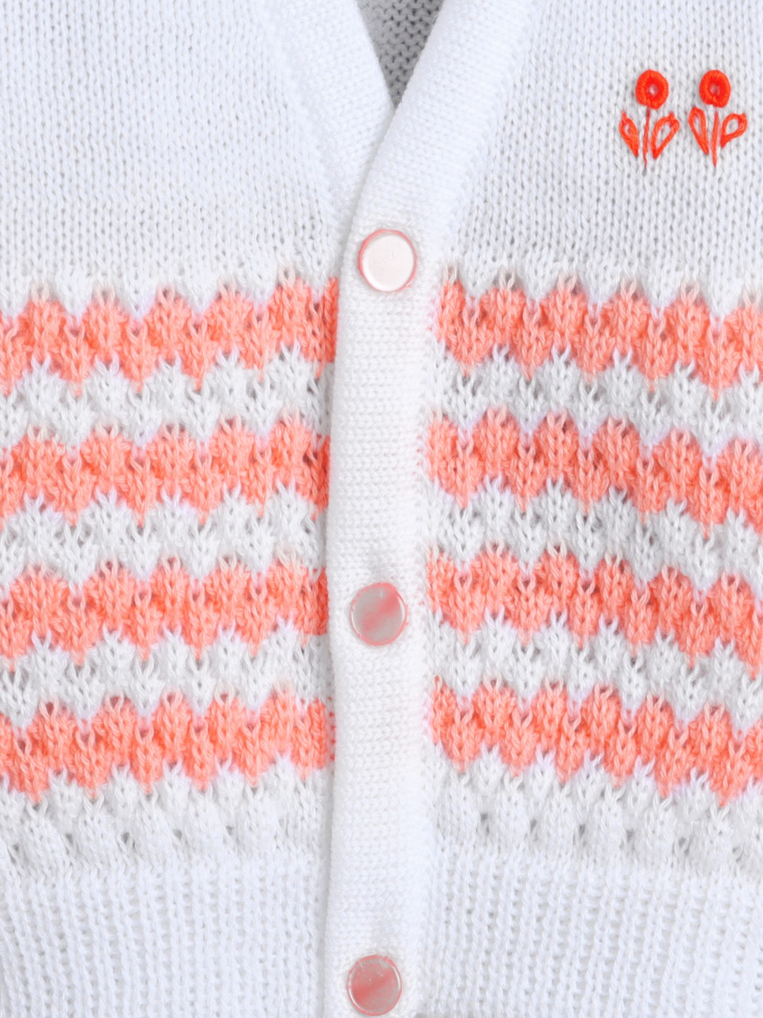 BUMZEE Peach Baby Girls Full Sleeves Acrylic Blend Sweater With Cap & Socks